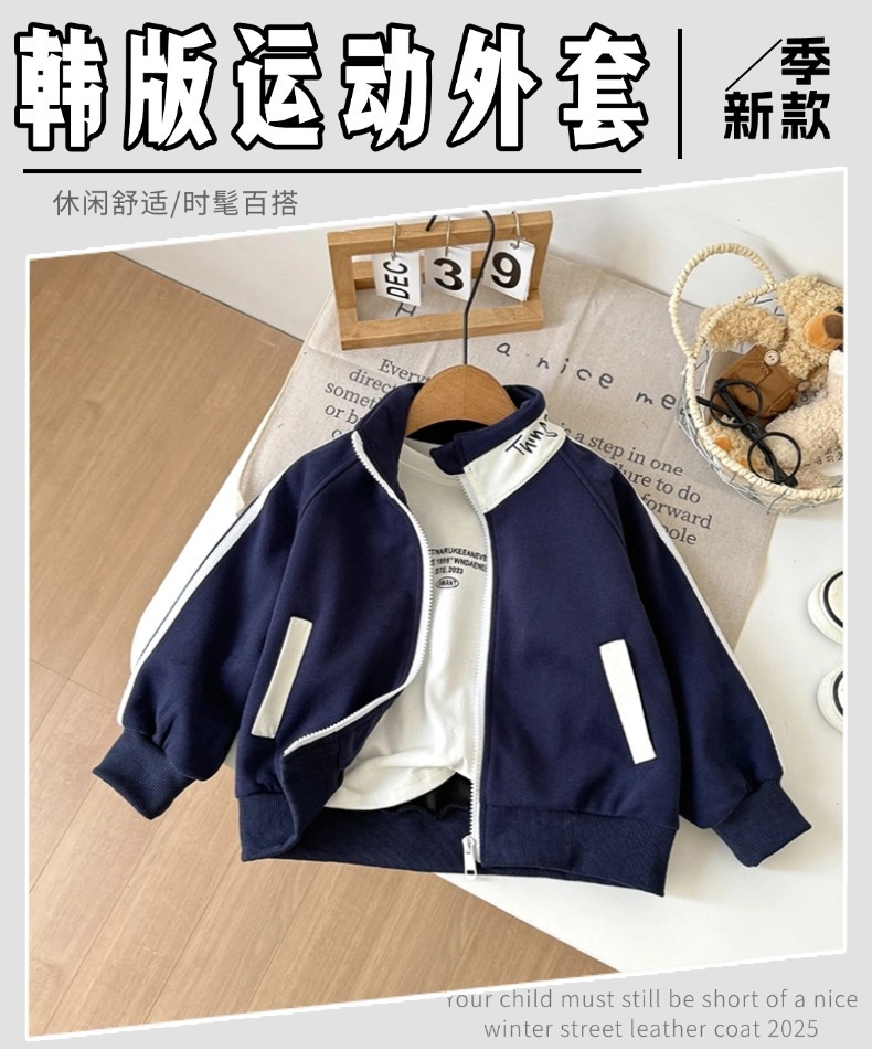 남아용 봄 재킷 2026 신상 아동용 한국 스타일 스탠드 칼라 스포츠 카디건 패셔너블한 중소 아동용 지퍼 상의스토어 가기