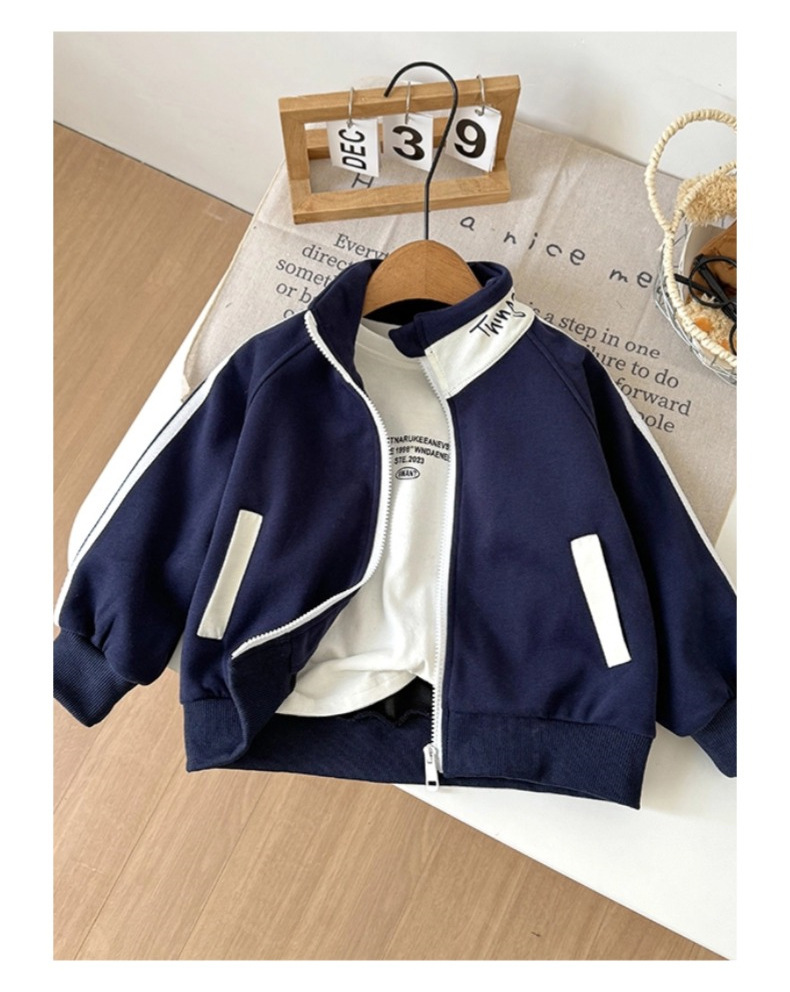 남아용 봄 재킷 2026 신상 아동용 한국 스타일 스탠드 칼라 스포츠 카디건 패셔너블한 중소 아동용 지퍼 상의