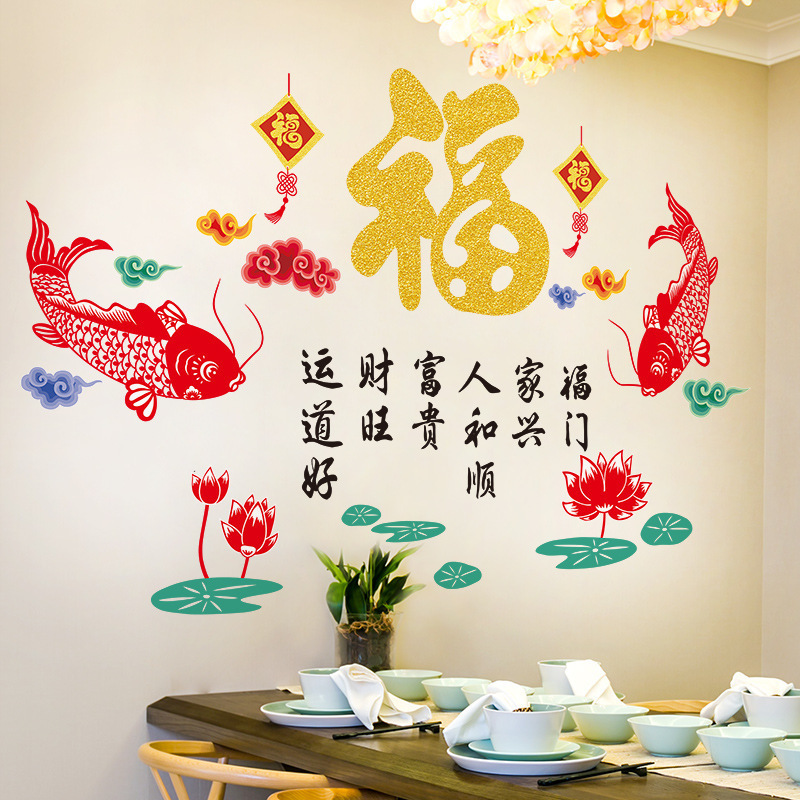 3D 스테레오 벽 스티커 레스토랑 새해 새해 봄 축제 거실 TV 배경 벽 장식 스티커 벽지