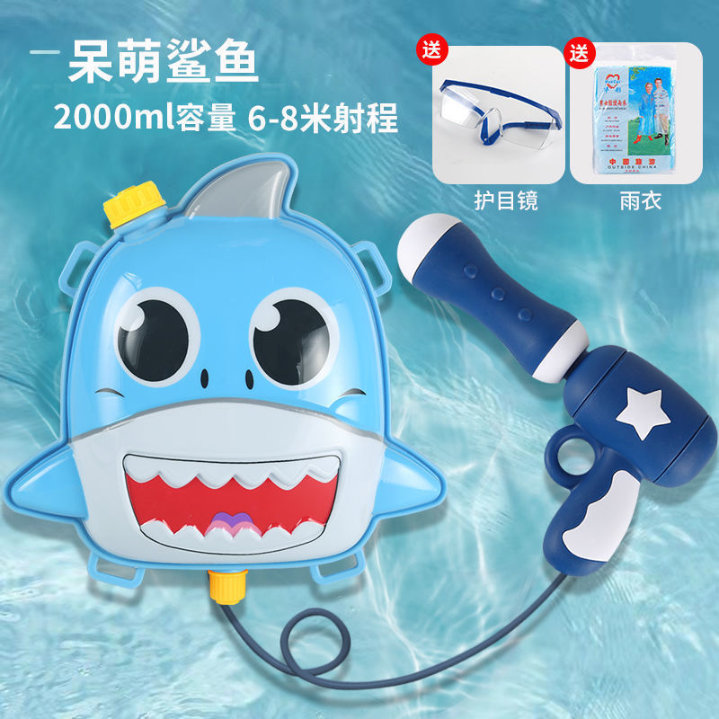 • 백팩 물총 [샤크]-2L-럭셔리 패키지 + 고글 + 레인코트