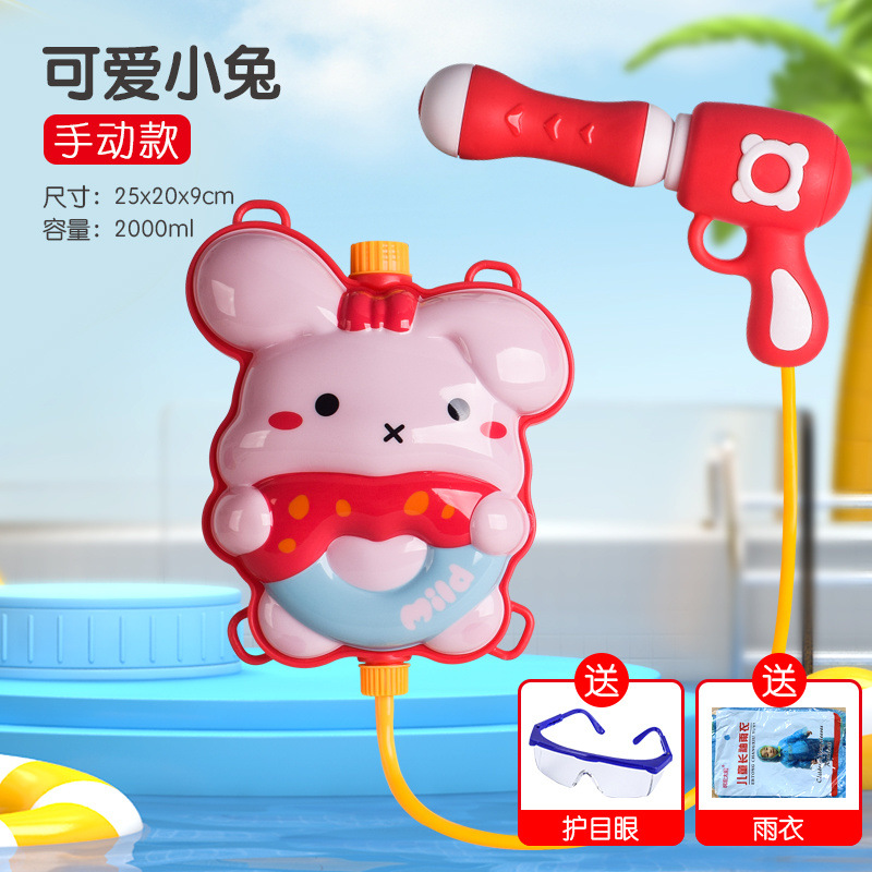 • 백팩 물총 [귀여운 토끼]-2L-럭셔리 패키지 + 고글 + 비옷