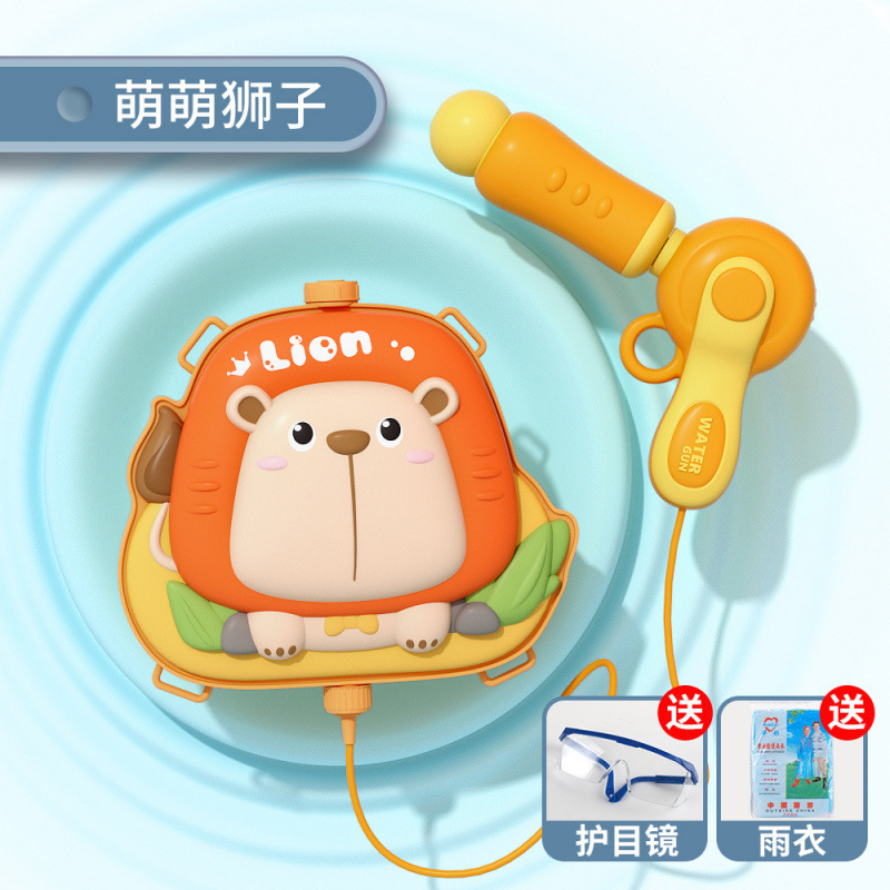 • 백팩 물총 [귀여운 사자]-2L-럭셔리 패키지 + 고글 + 비옷