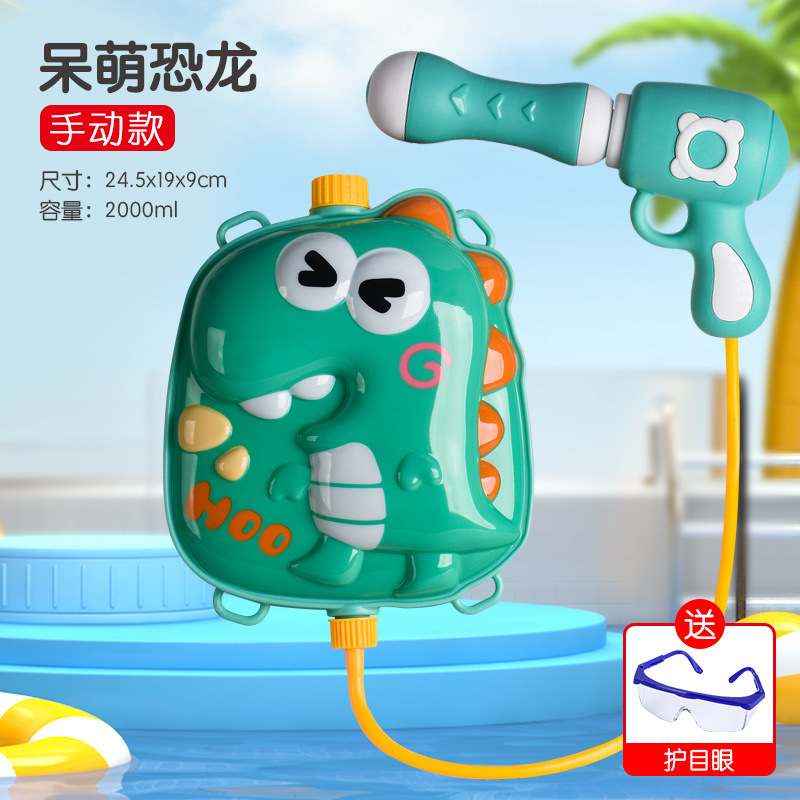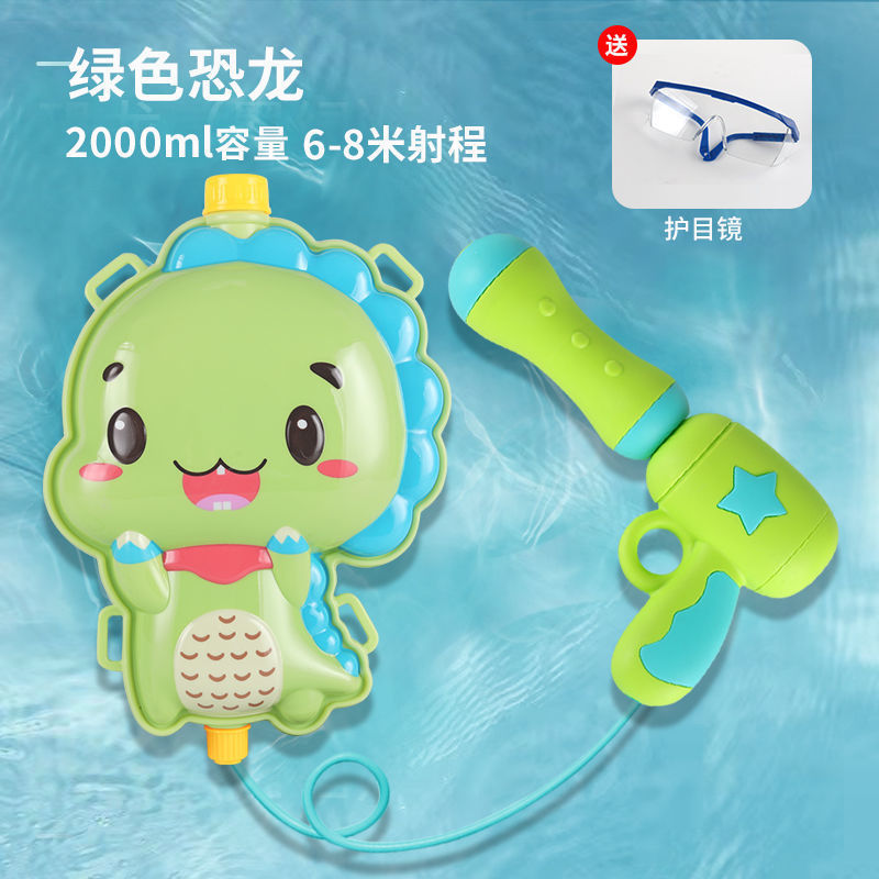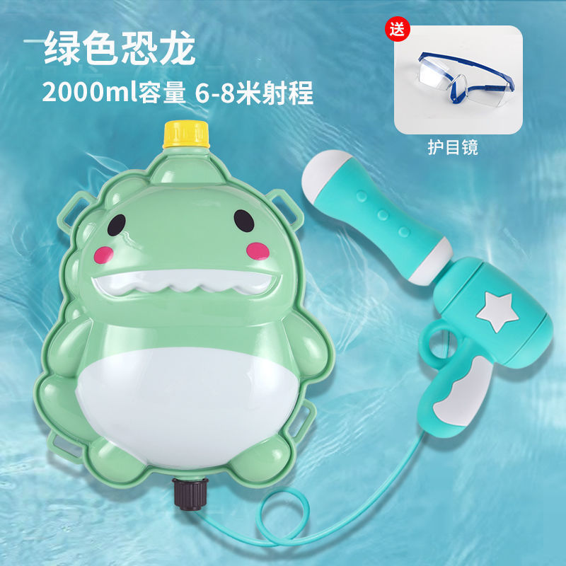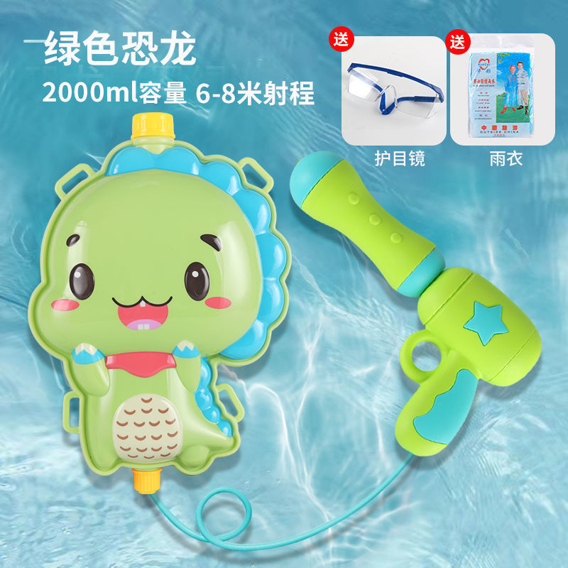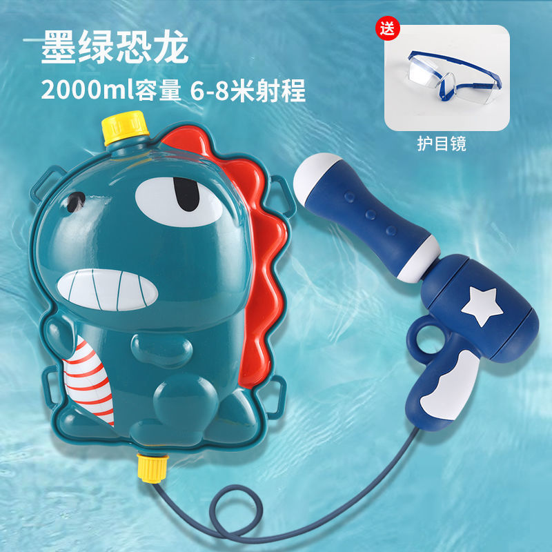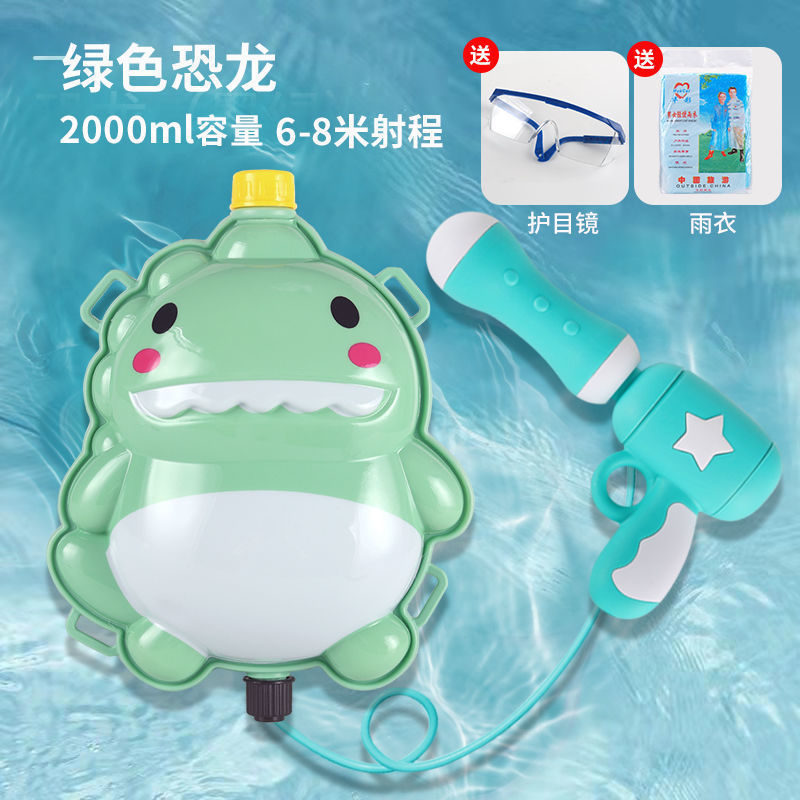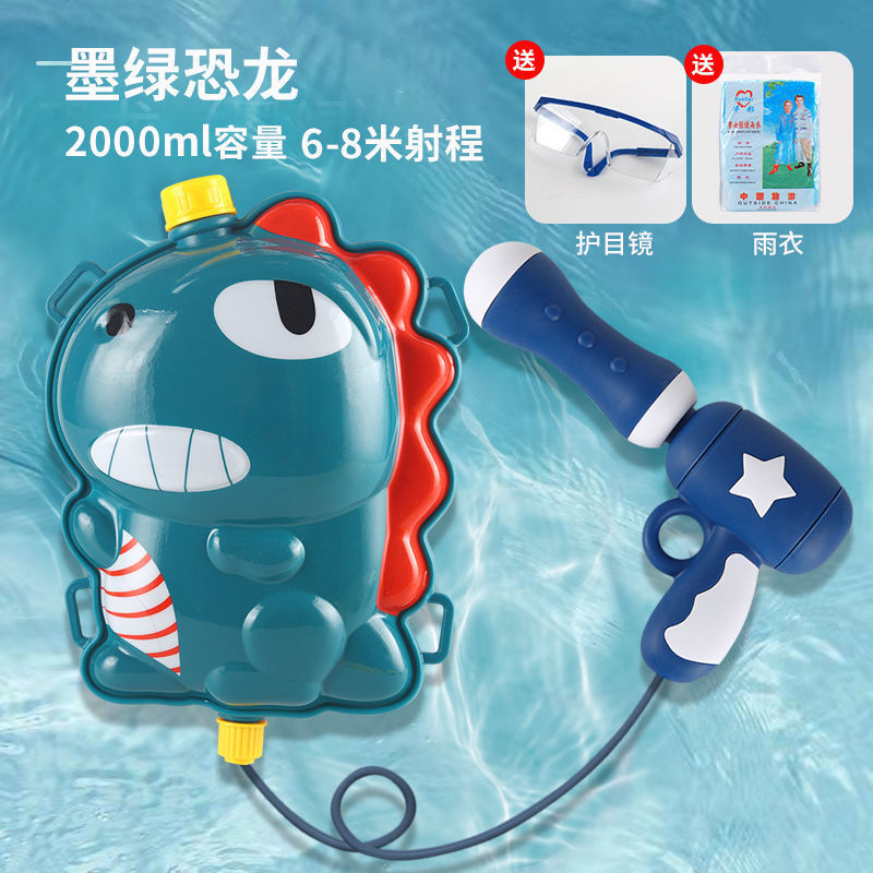 • 백팩 물총 [짙은 녹색 공룡]-2L-럭셔리 패키지 + 고글 + 비옷