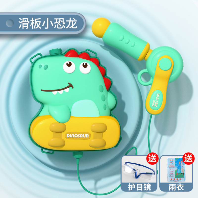 • 백팩 물총 [스케이트보드 공룡]-2L-럭셔리 패키지 + 고글 + 레인코트
