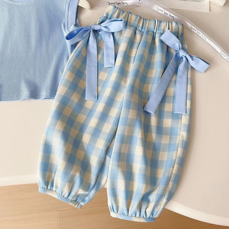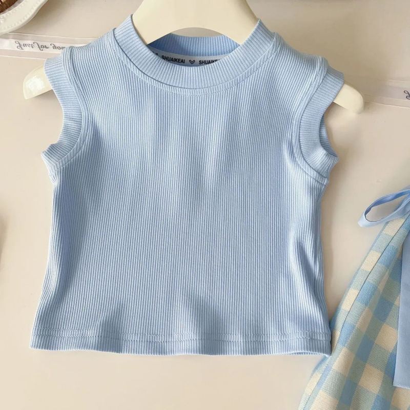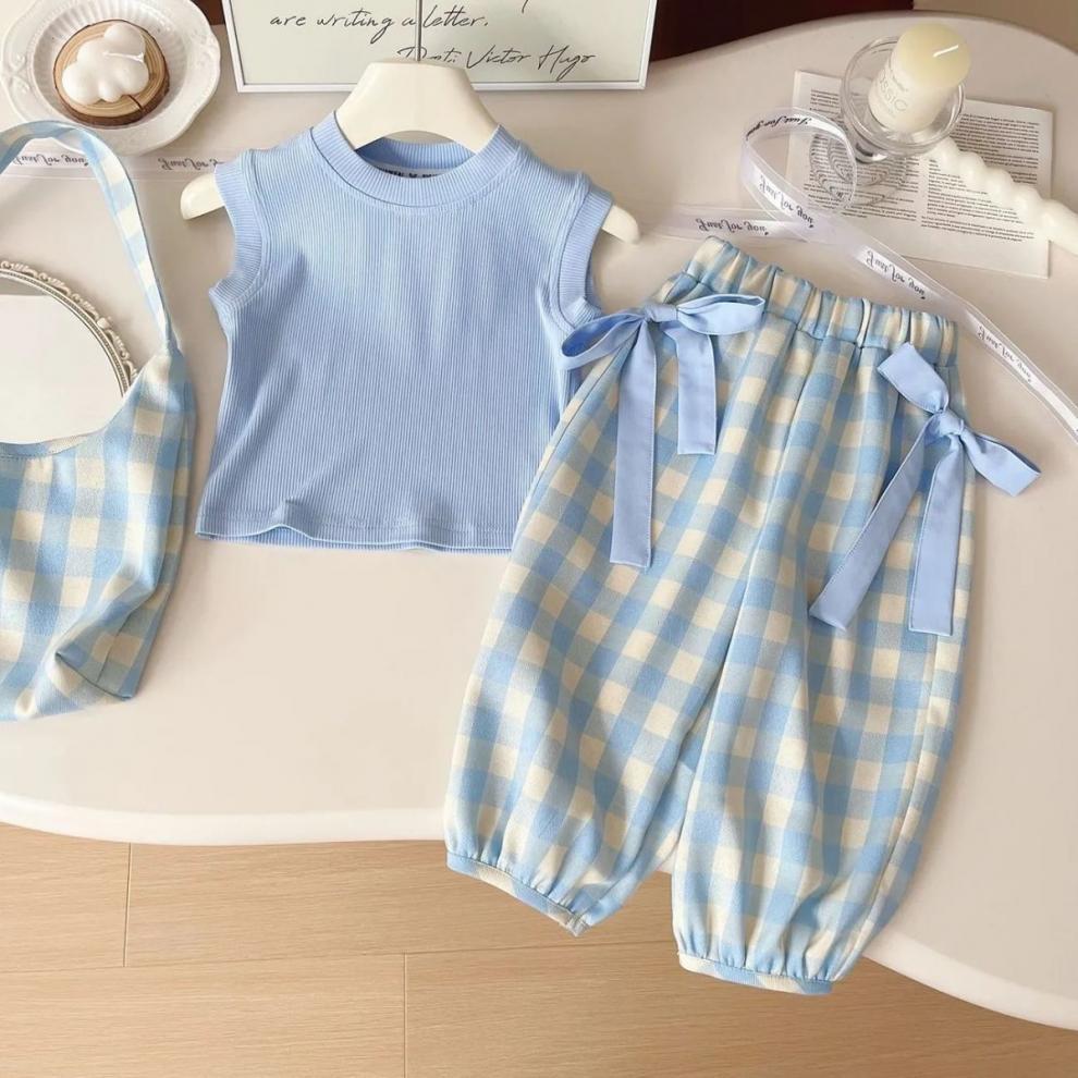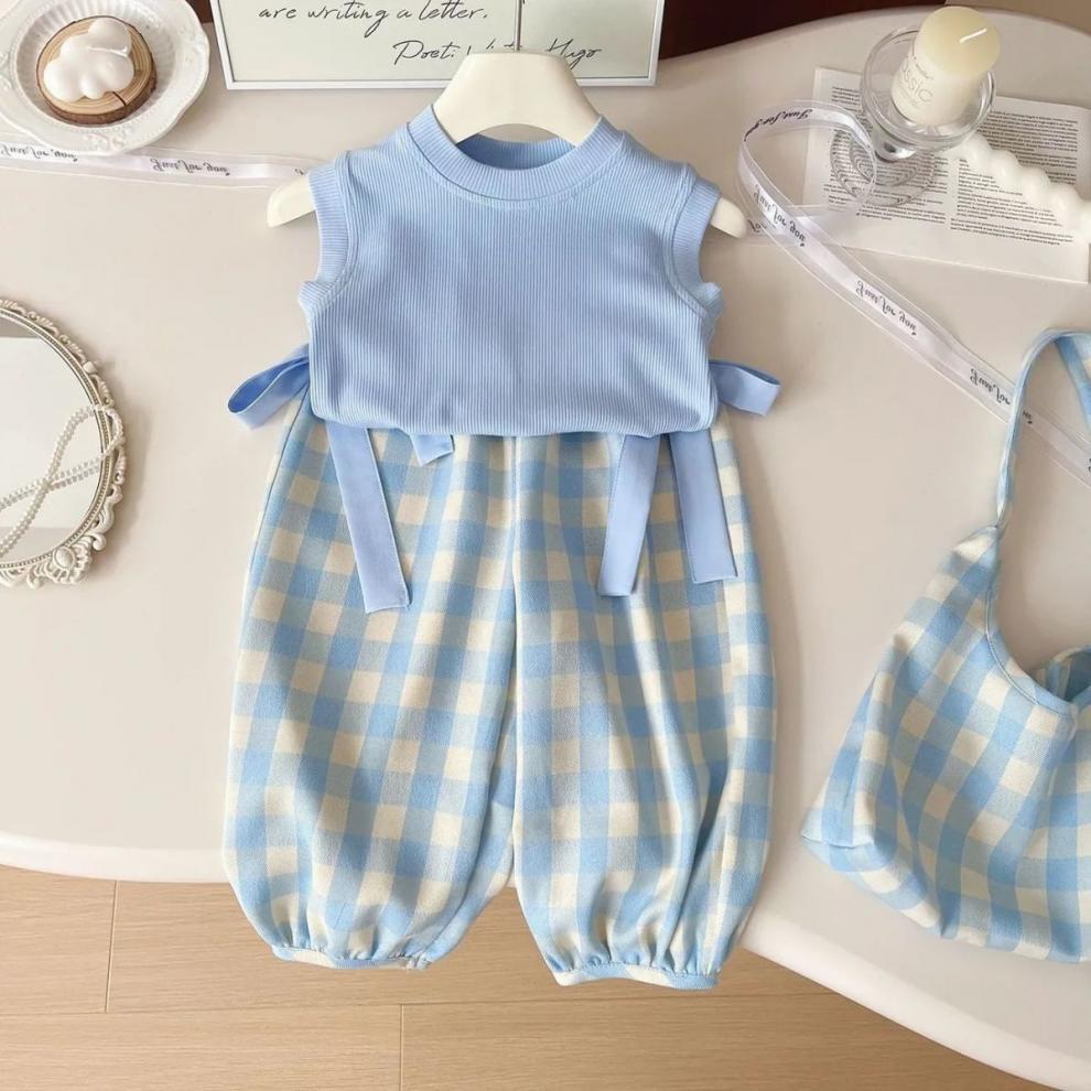 여자 여름 조끼 세트 2025 새로운 얇은 서양식 소녀 스포츠 어린이 프렐리스 바지 민소매 투피스 세트