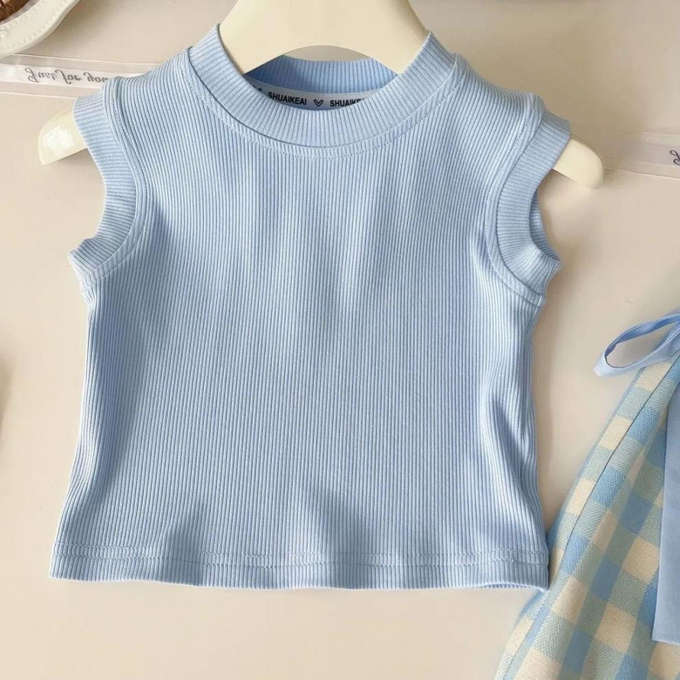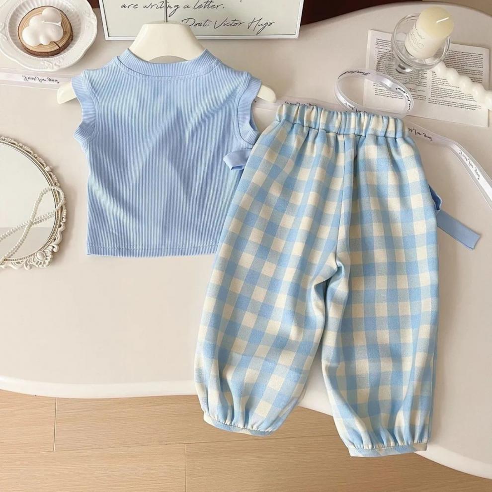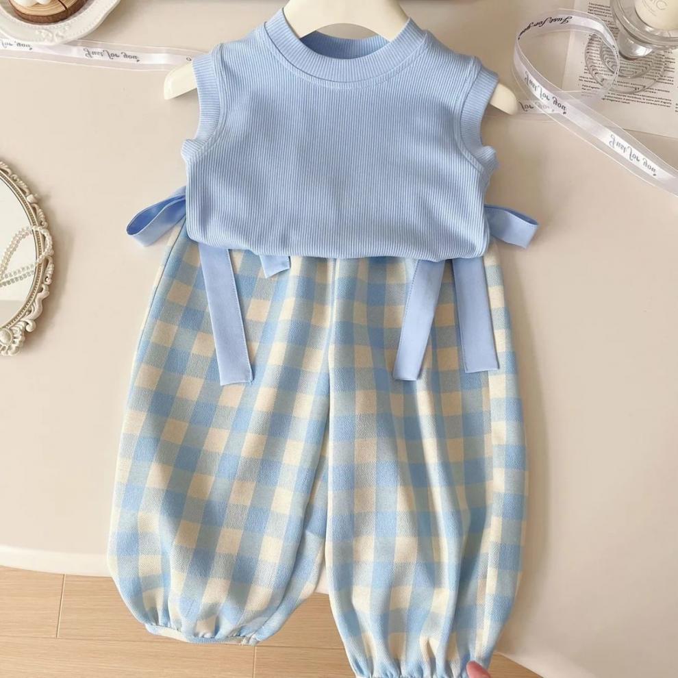 여자 여름 조끼 세트 2025 새로운 얇은 서양식 소녀 스포츠 어린이 프렐리스 바지 민소매 투피스 세트스토어 가기