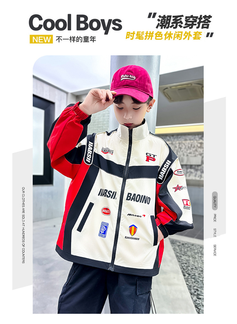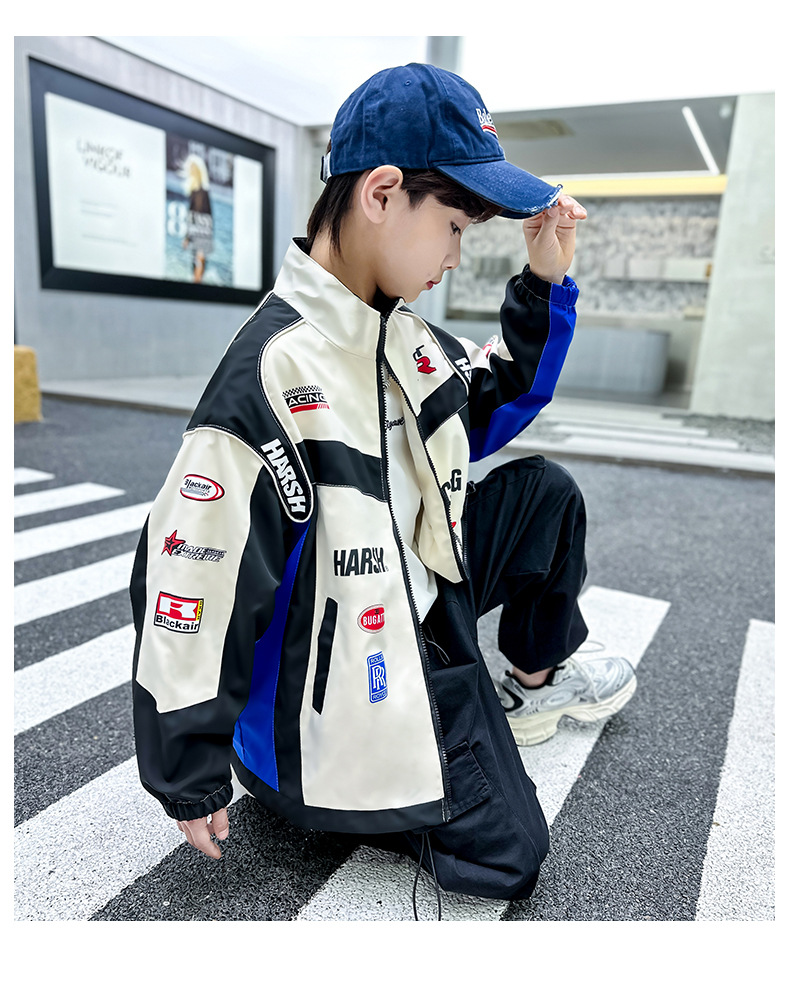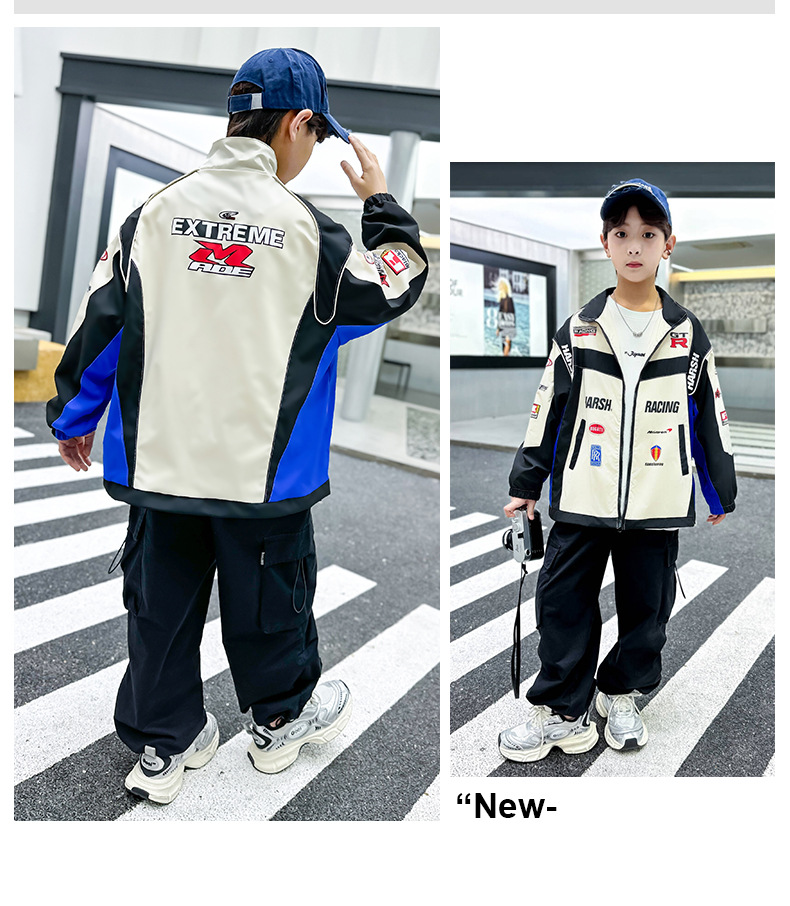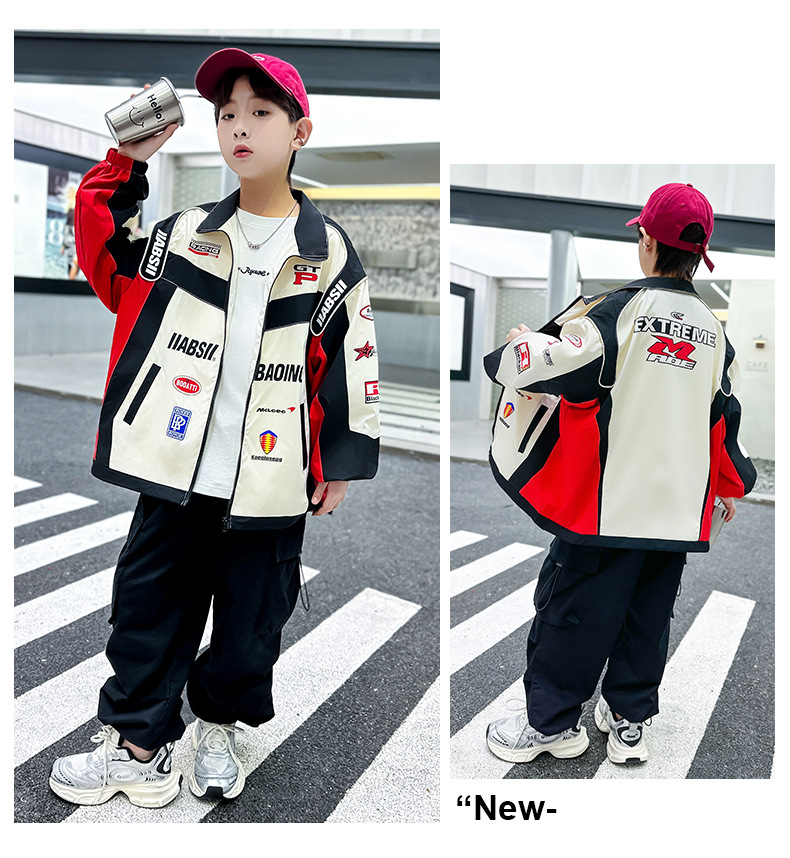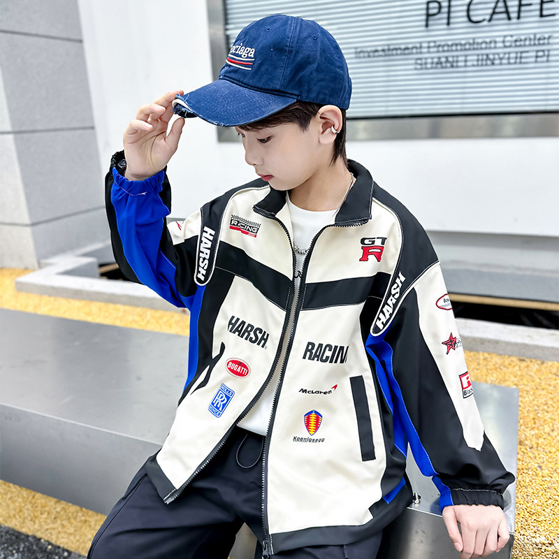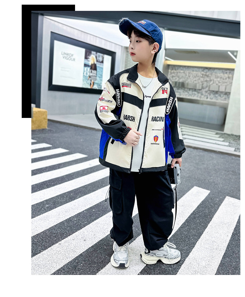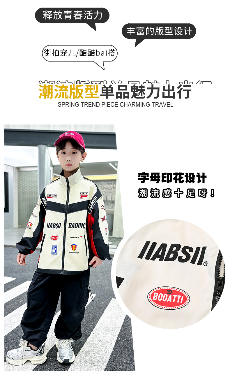 어린이 봄 착용 소년 바이커 세트 폭발 거리 2025 봄과 가을 새로운 스타일 미드 빅 어린이 봄 재킷 코트 유행스토어 가기