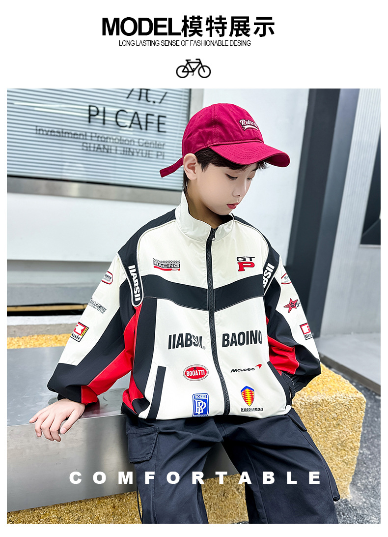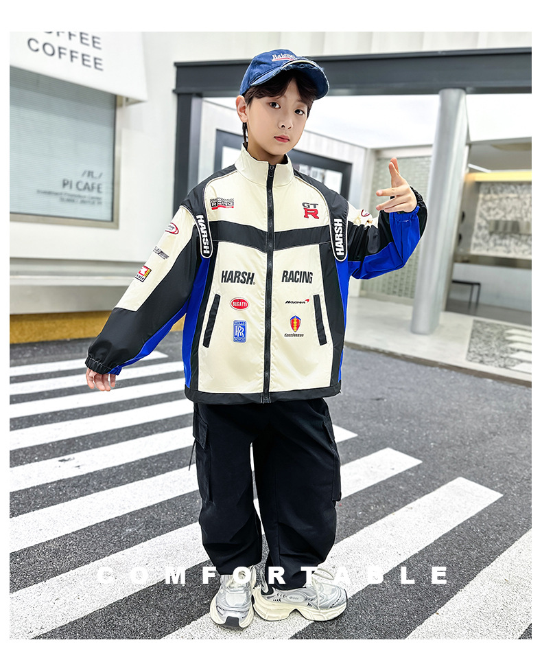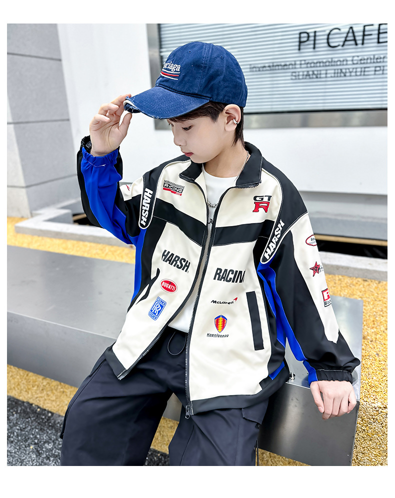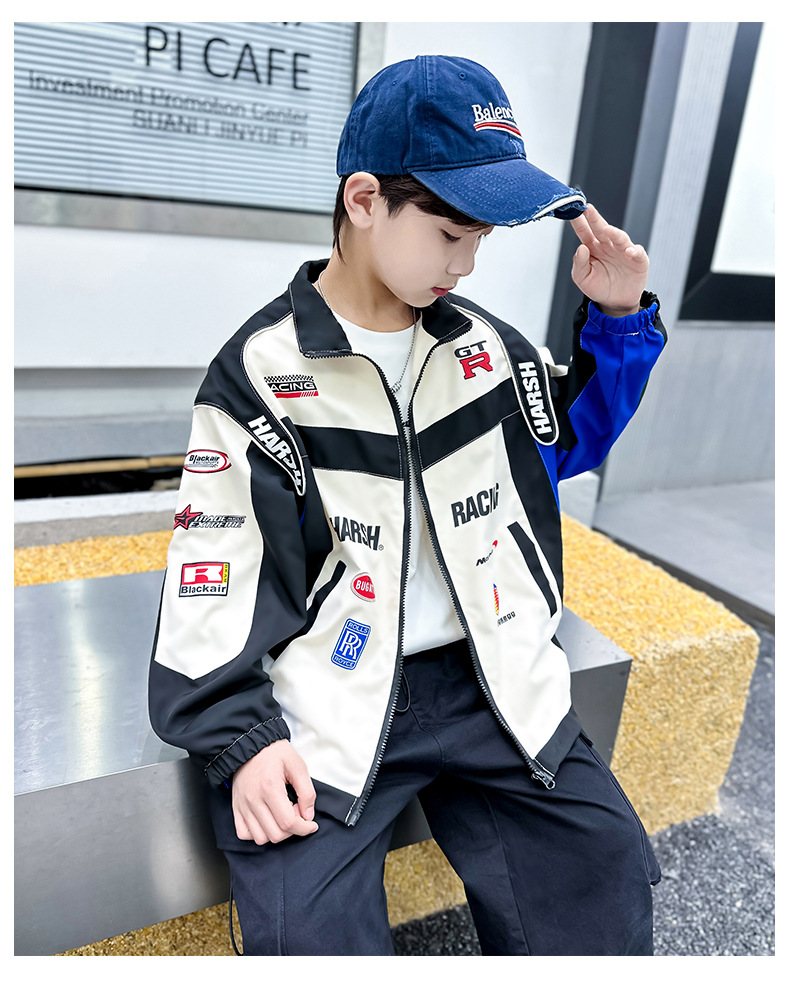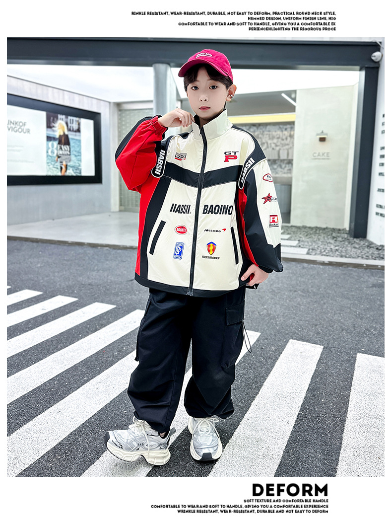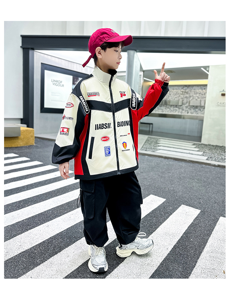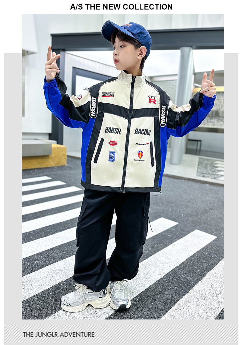 어린이 봄 착용 소년 바이커 세트 폭발 거리 2025 봄과 가을 새로운 스타일 미드 빅 어린이 봄 재킷 코트 유행스토어 가기