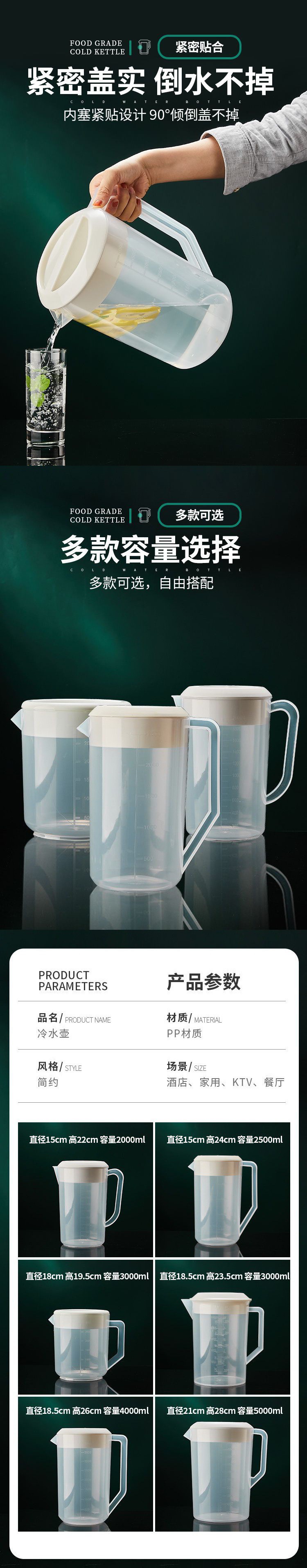 플라스틱 차가운 물 주전자 차 양동이 높은 온도 저항하는 대용량 냉수 냄비 가정용 우유 차 가게 크기의 뚜껑이있는 컵 측정스토어 가기