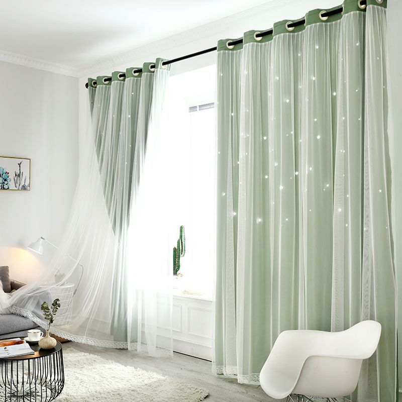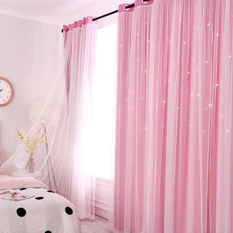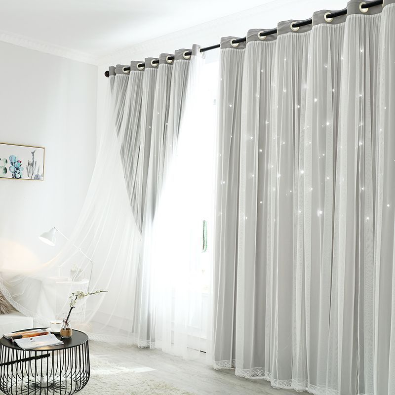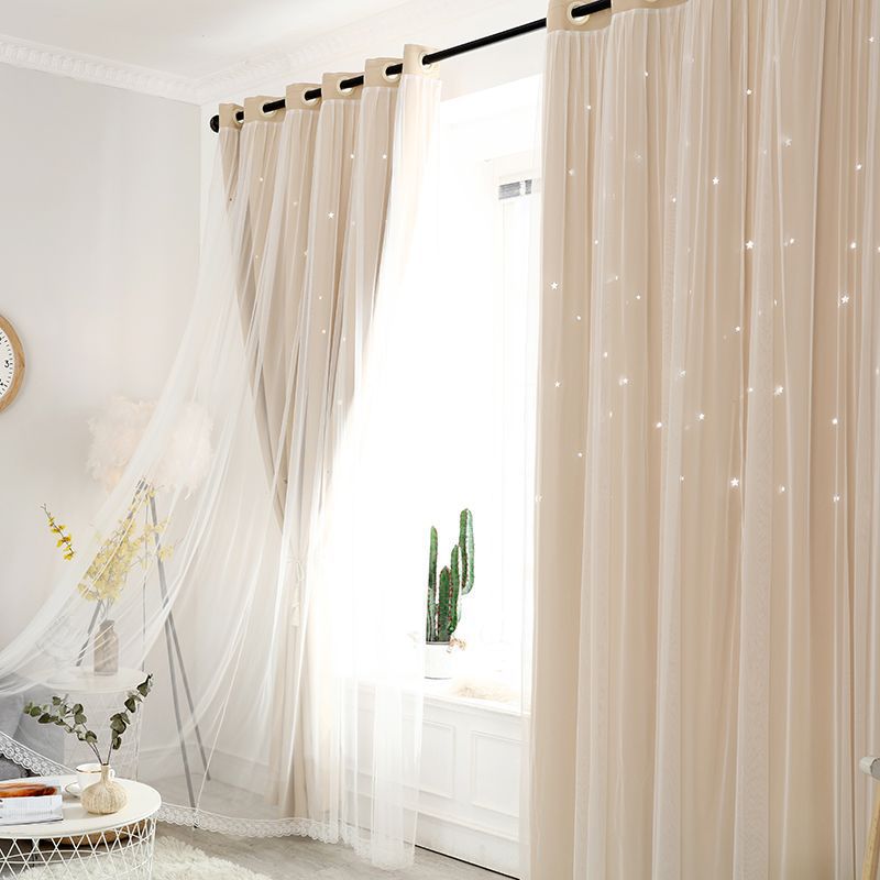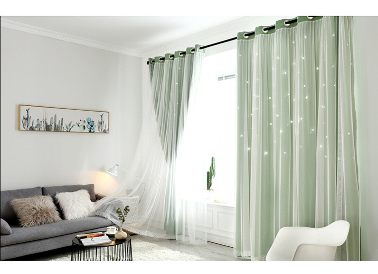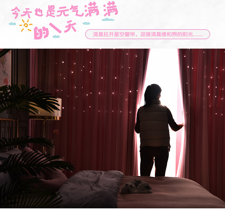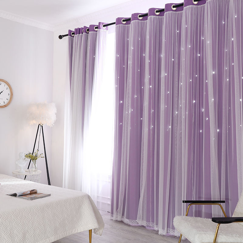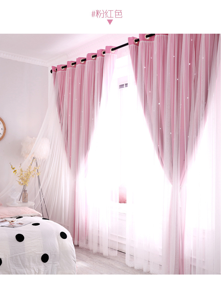 스타 더블 쉐이딩 레이스 베이 창 침실 거실 빈 스타 넷 레드 공주 바람 커튼 공장 도매스토어 가기