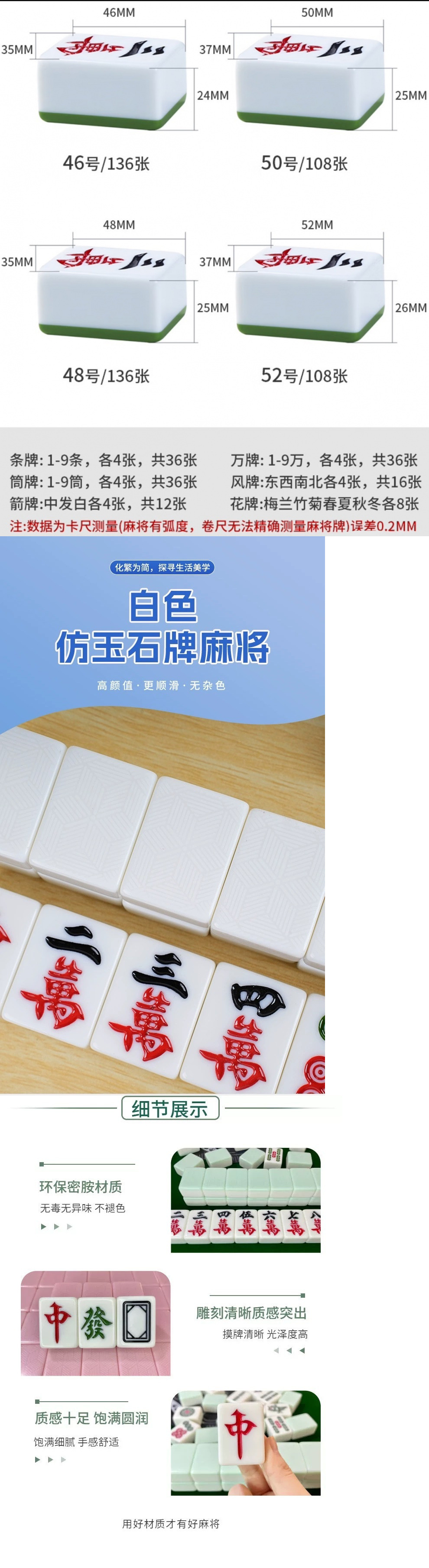 옥 기계 대마 컬러 옥 고급 마작 카드 체스 룸 특수 강한 자기 포지티브 자기 마작 대형 카드 5