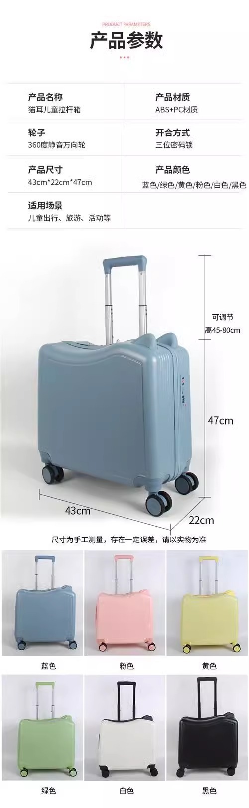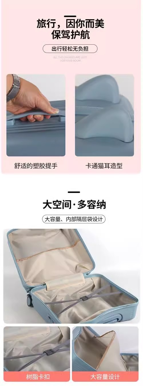 고양이 귀 마카롱 컬러 승마 어린이 트롤리 케이스 새로운 유니버설 휠 조합 잠금 어린이 수하물