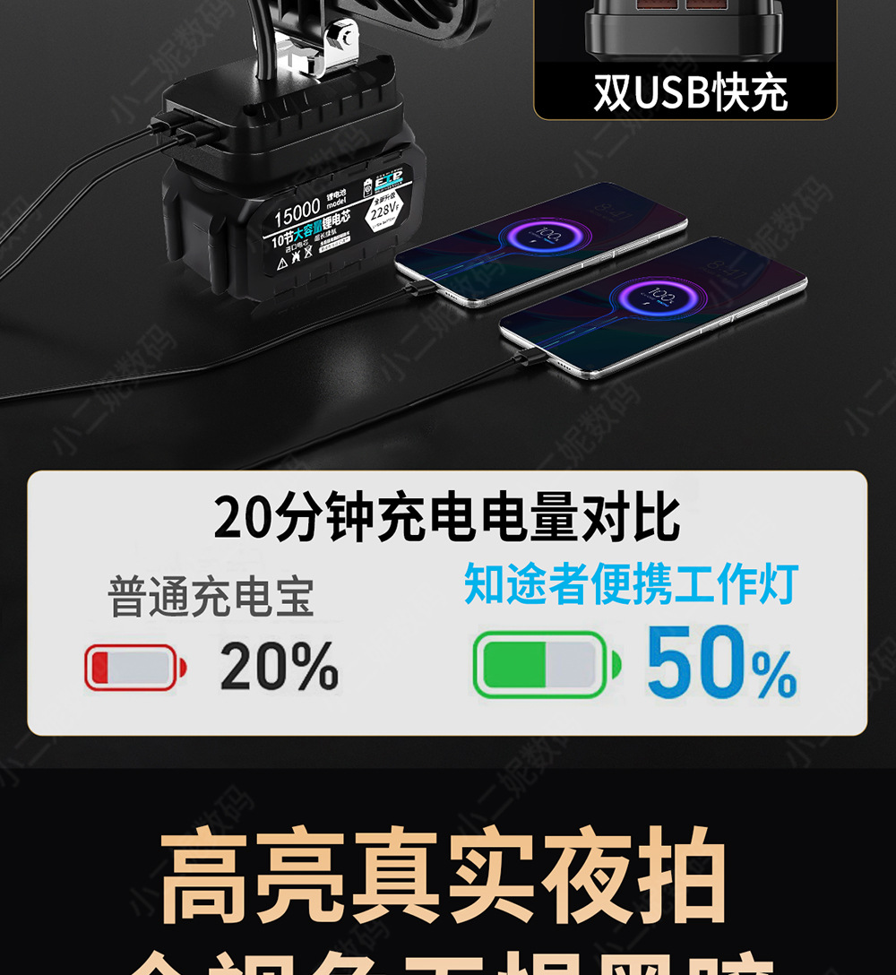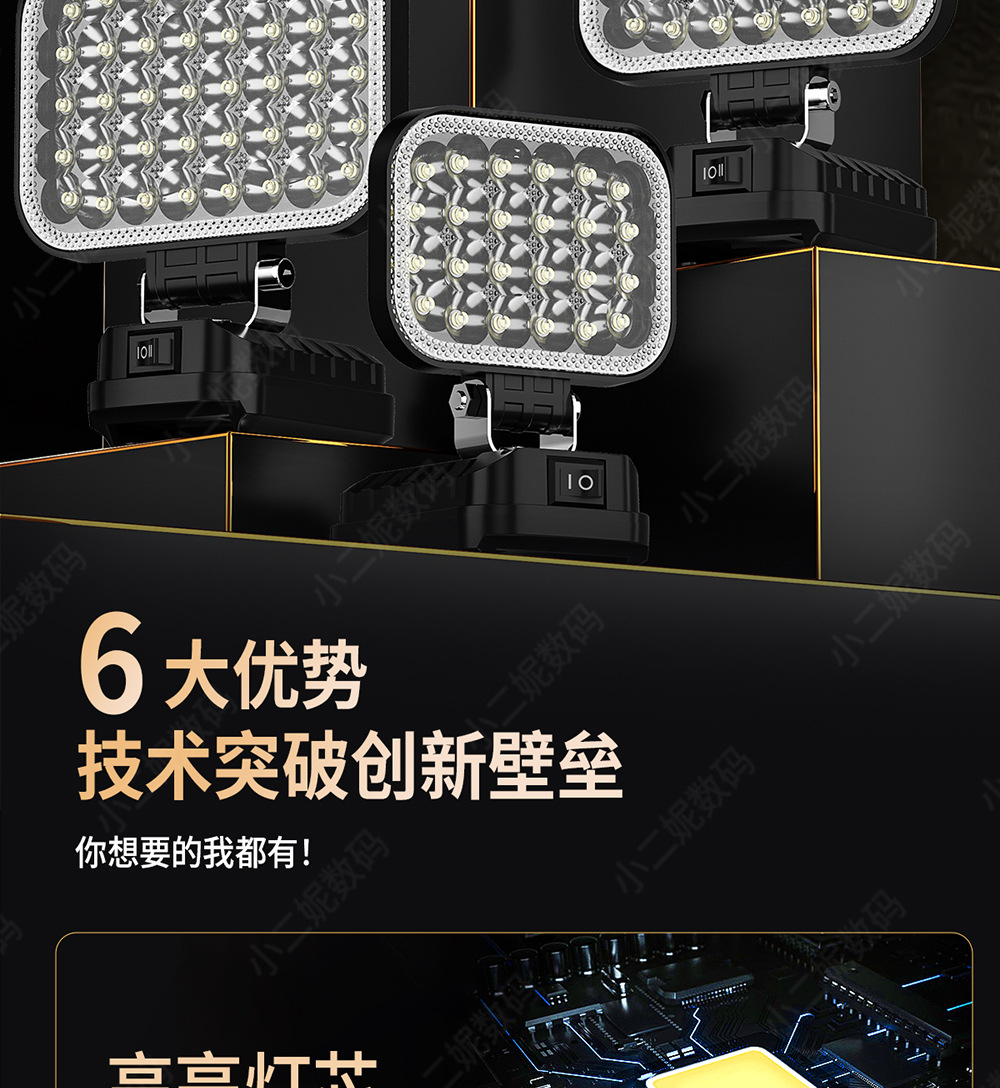 전동 공구 리튬 배터리 야외 LED 작업 조명 자동차 수리 사이트 캠핑 야간 낚시 조명 탐조등 지상 드릴 유지 보수 조명