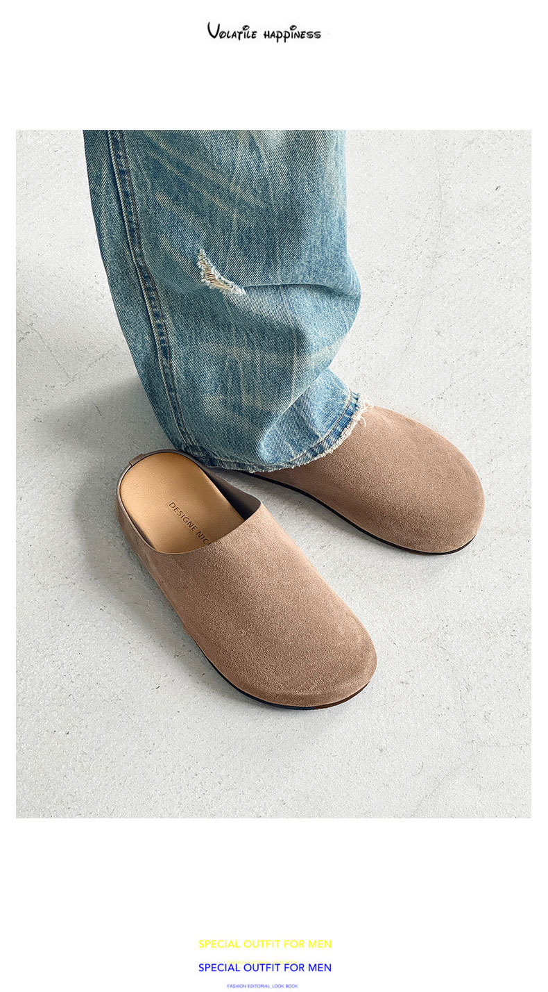 2025 봄과 가을 새로운 레트로 뮬러 드래그 커플 모델 남성 Boken 슬리퍼 두꺼운 바닥 캐주얼 게으른 신발