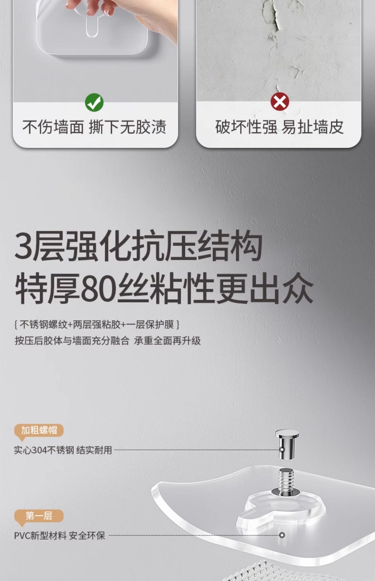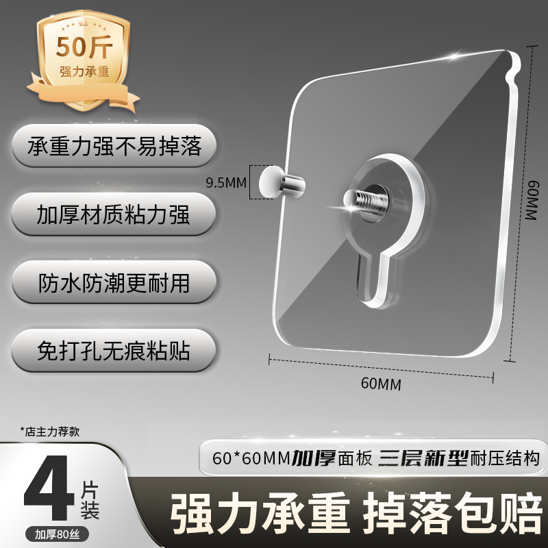 후크 펀치없는 강한 접착 스티커 벽 하중이있는 주방 문 후면 투명 원활한 접착 후크 의류 후크