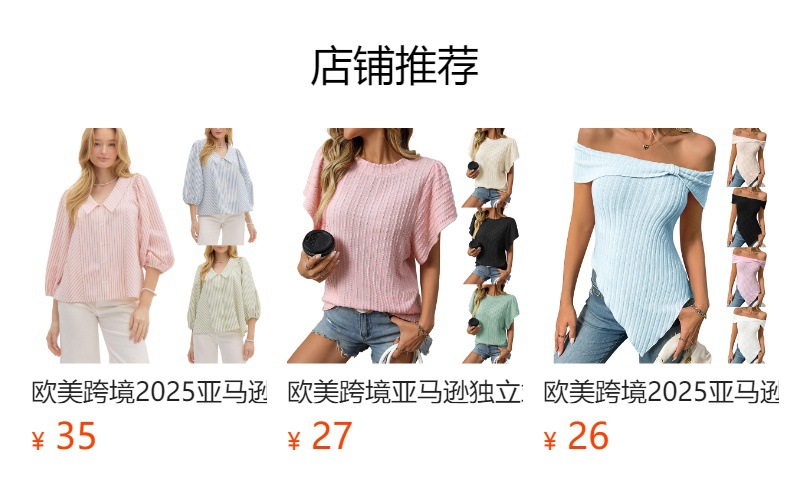 유럽과 미국의 여성 셔츠 아마존 독립 역 국경 2025 새로운 V 넥 스티칭 버블 슬리브 스트라이프 탑