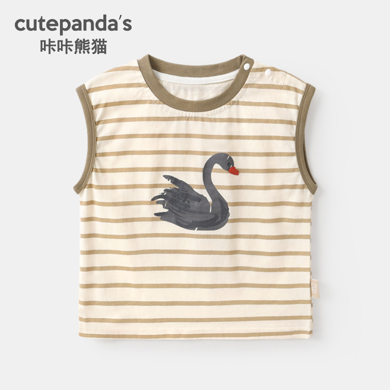 카카 팬더 어린이 조끼 아기 아동복 소년 캐주얼 민소매 티셔츠 여름 여름 소녀의 아기 탑