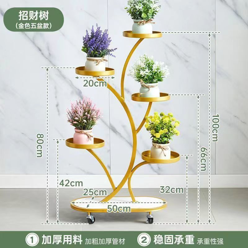 바퀴 달린 모바일 플라워 랙 거실 바닥 스탠딩 스토리지 랙 발코니 간단한 꽃 냄비 랙 철 녹색 식물 배치 랙