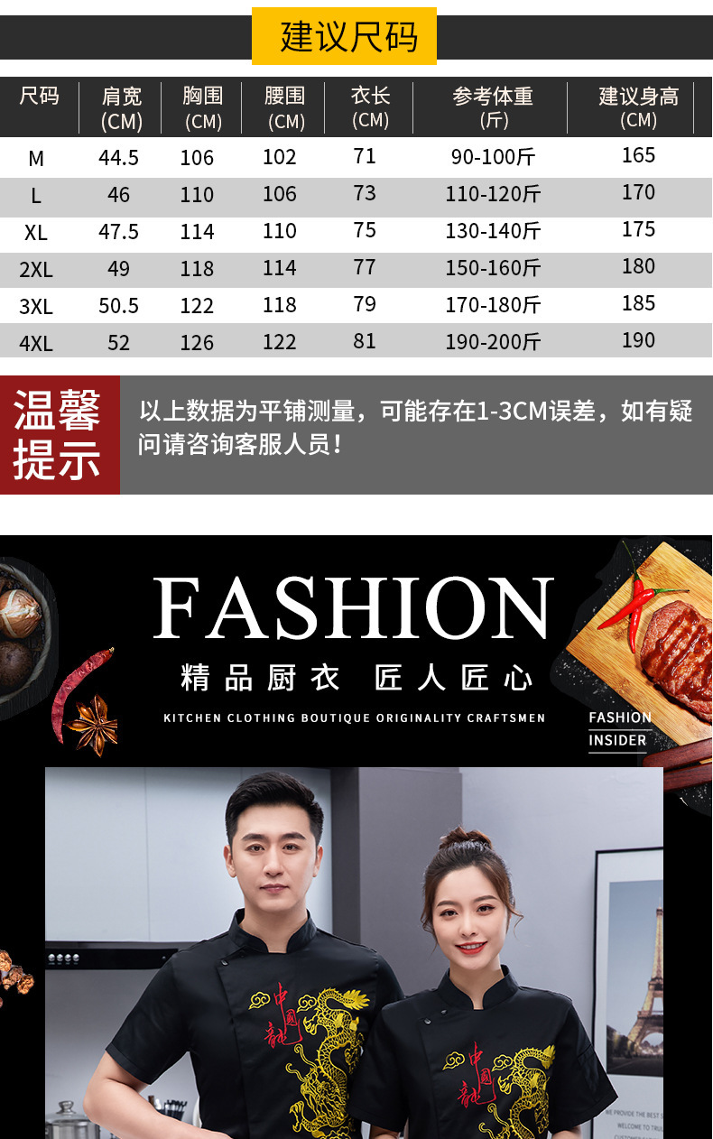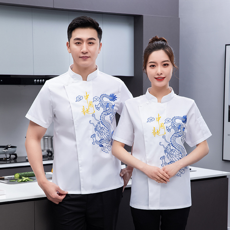 여름 통기성 요리사 옷 요리사 용 작업 옷 요리사 주방 최고 경영자 하이 엔드 불리 드래곤 남성스토어 가기