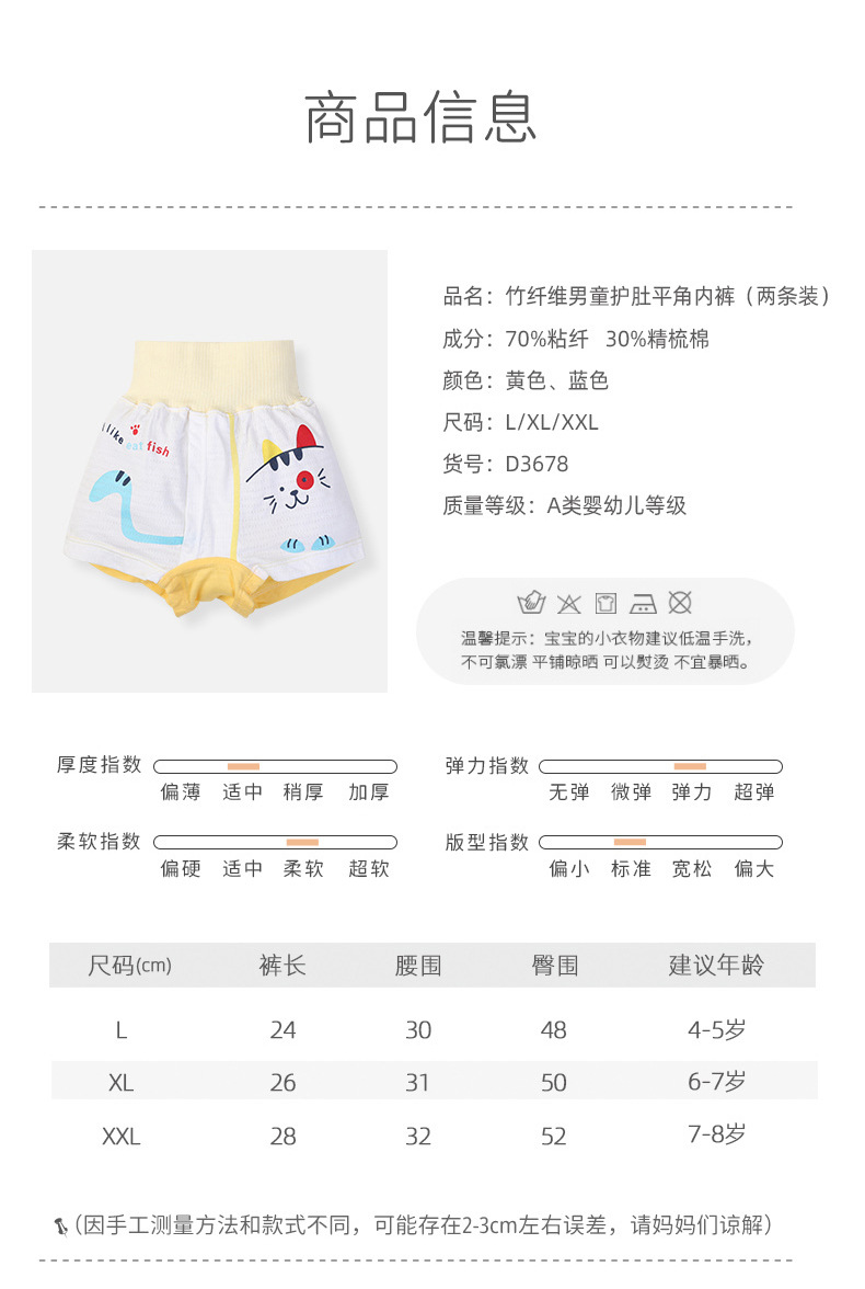 어린이 높은 허리 배꼽 보호 반바지 메쉬 통기성 어린이 속옷 소년 아기 복서 대나무 섬유 면 2 팩