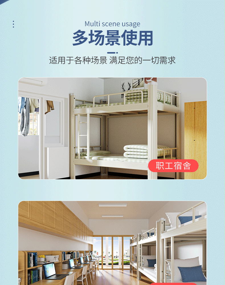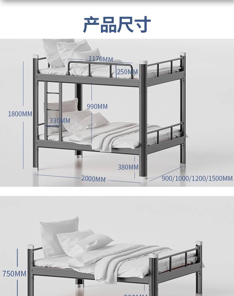 상하 이층 침대 학생 기숙사 직원 사이트 철 프레임 높고 낮은 선반 철 더블 침실 아파트 철제 침대