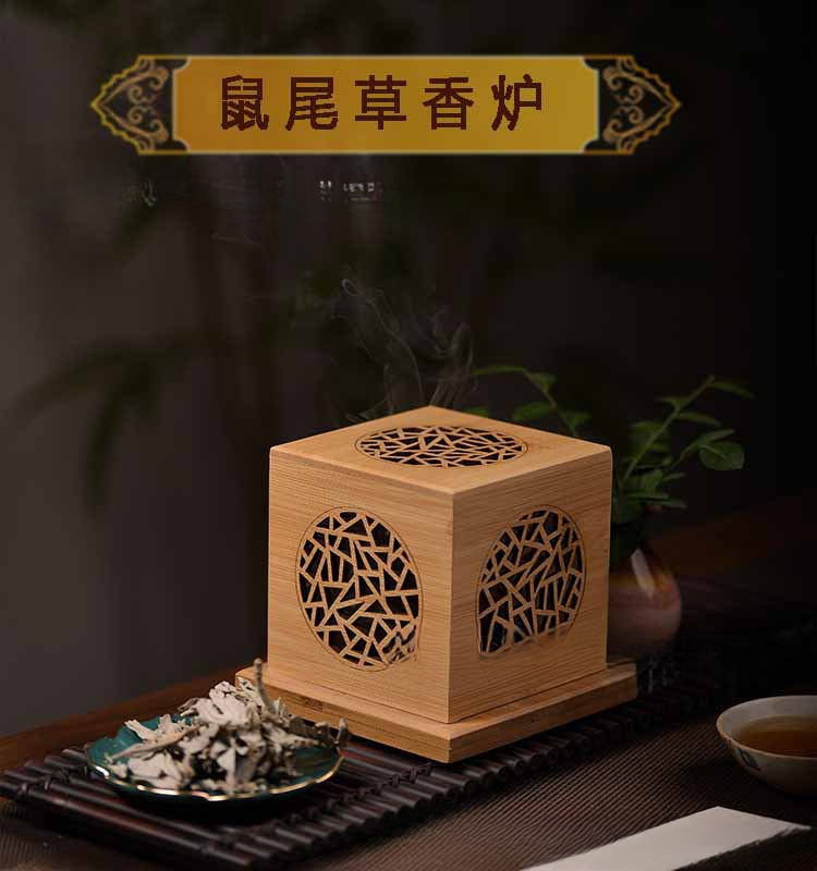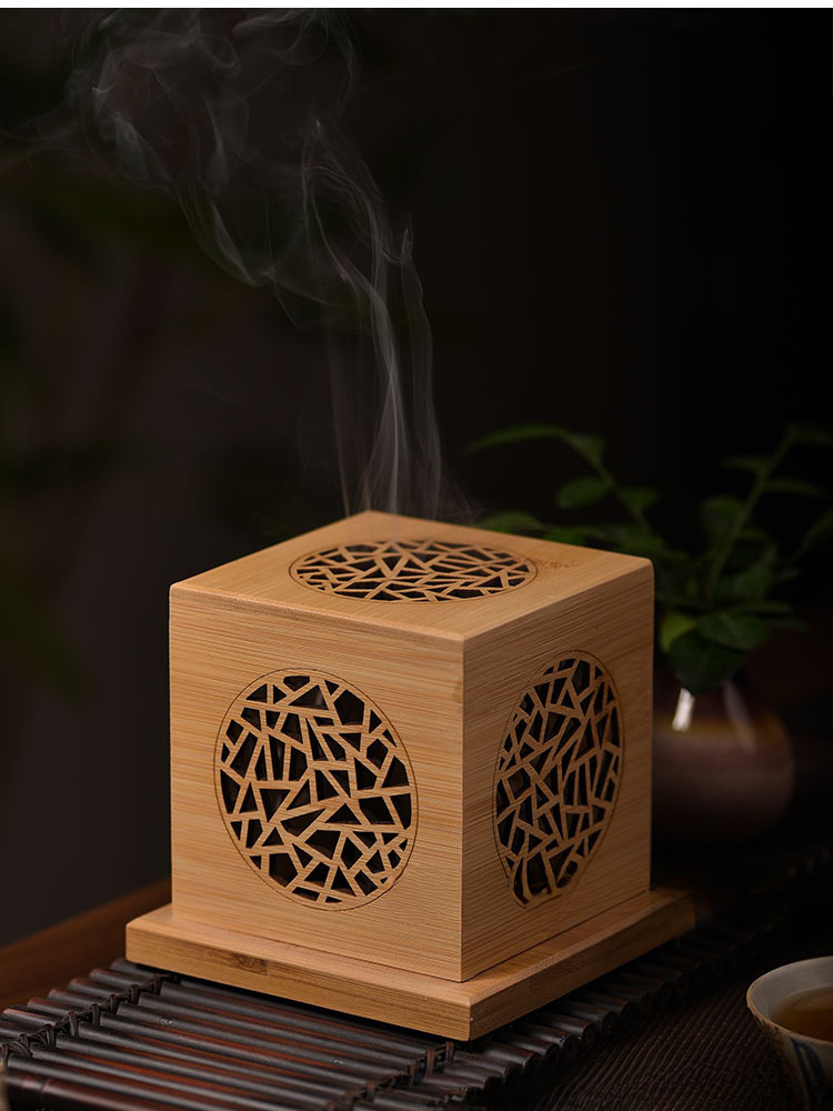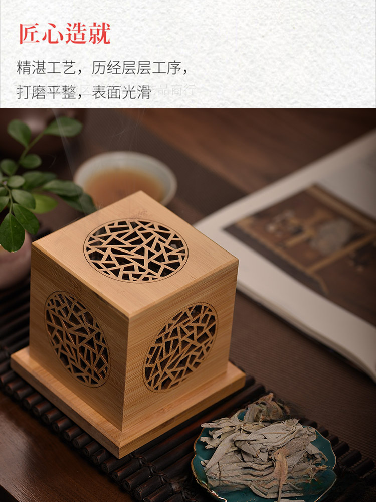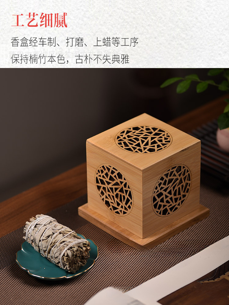 기하학적 피규어 화이트 마우스 테일 향 버너 크리스탈 버너 향 버너 대나무 나무 샌달 우드 상자 할로우 향 상자 향 홀더