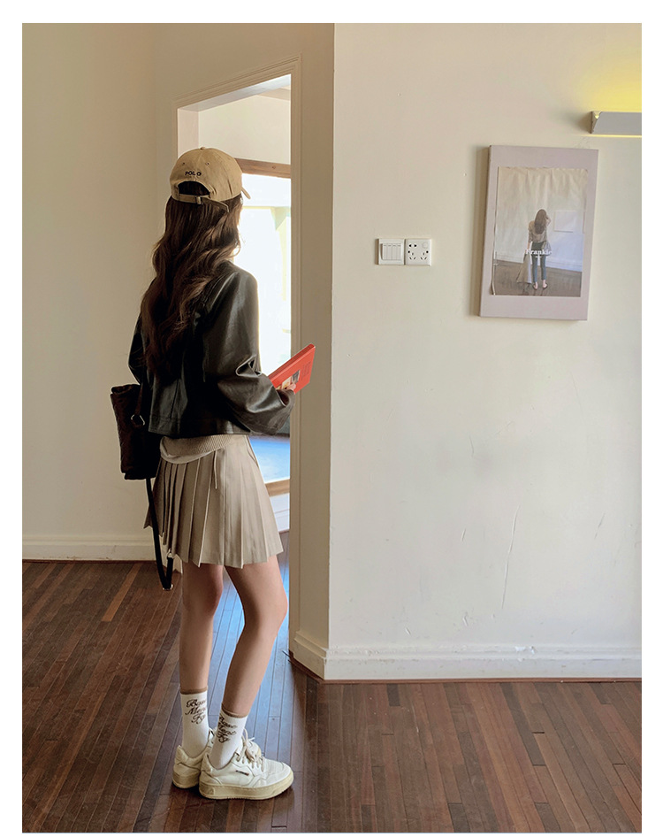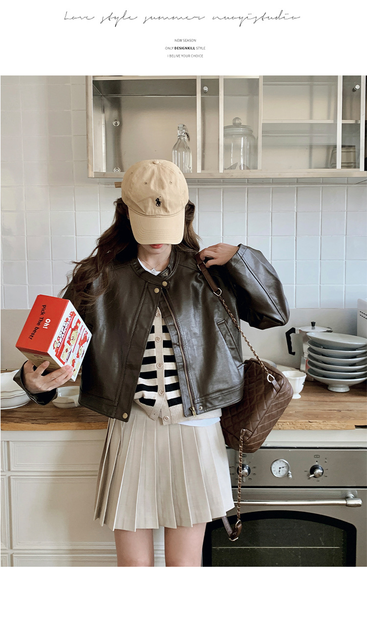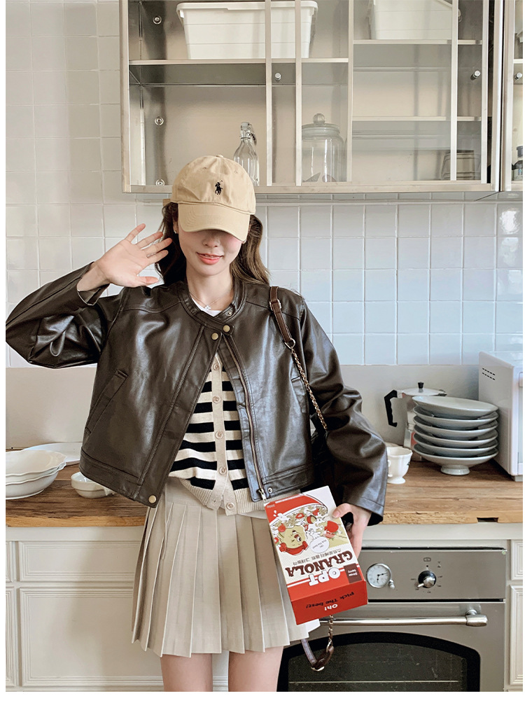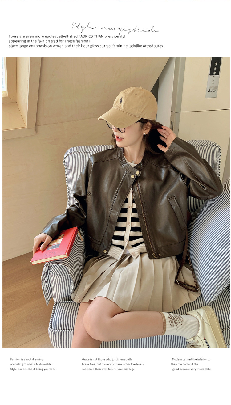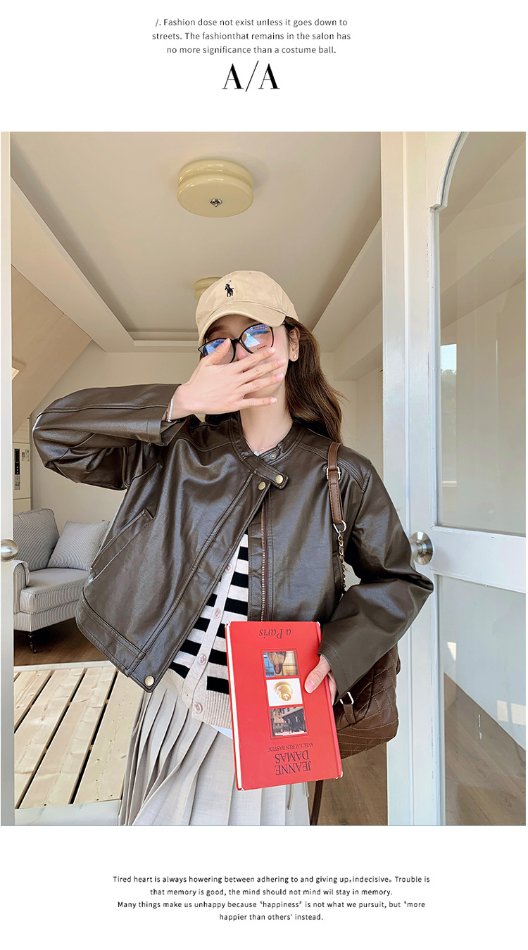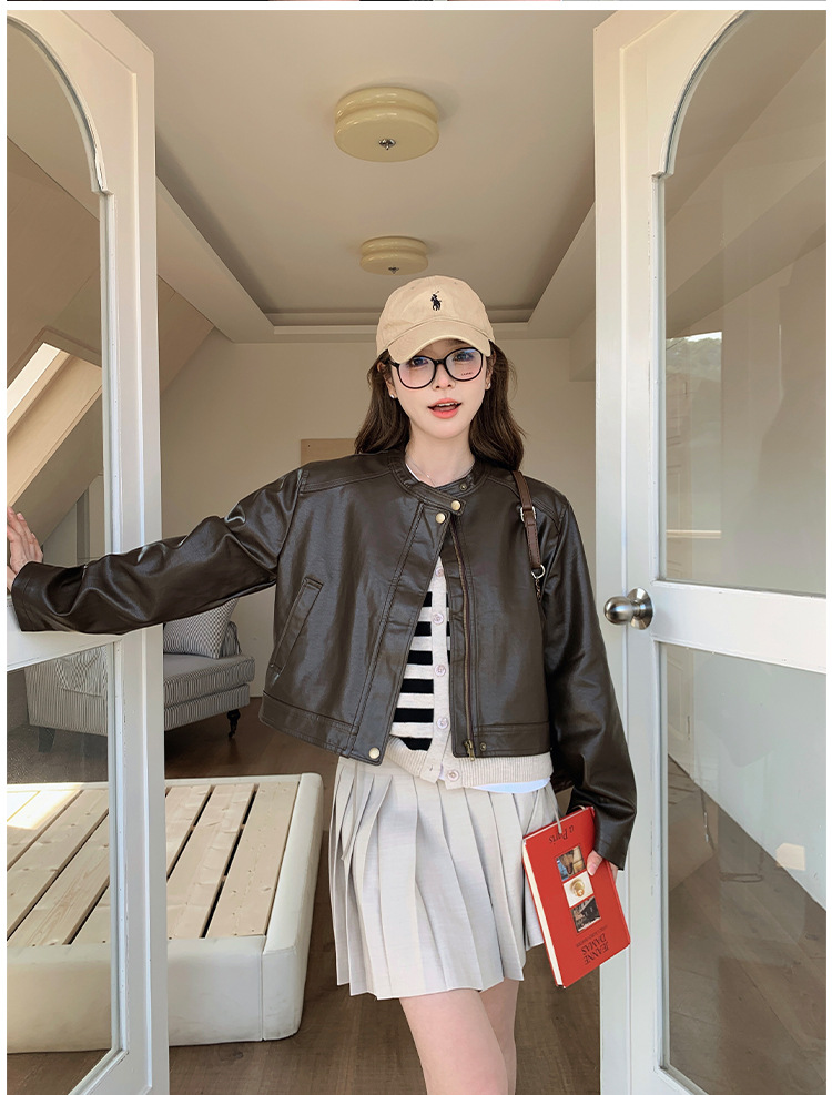 폭발 작은 다크 브라운 하이 엔드 감각 가죽 자켓 여성 2025 봄 올해 인기있는 짧은 오토바이 재킷스토어 가기