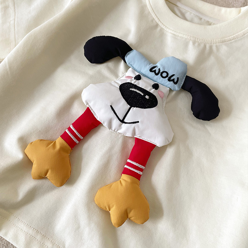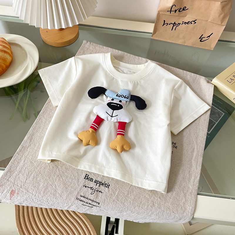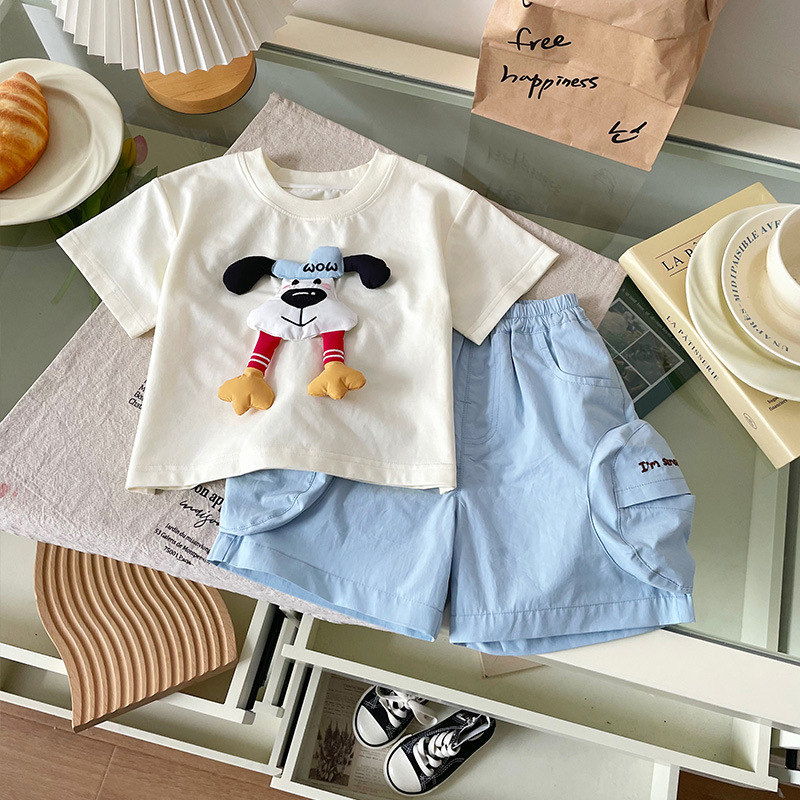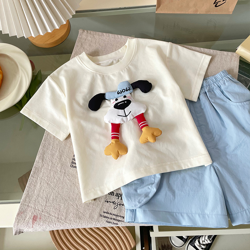 【재고 있음】XT253004 아동용 반팔 세트 2025 여름 신상 만화 입체 강아지 통기성 라운드넥