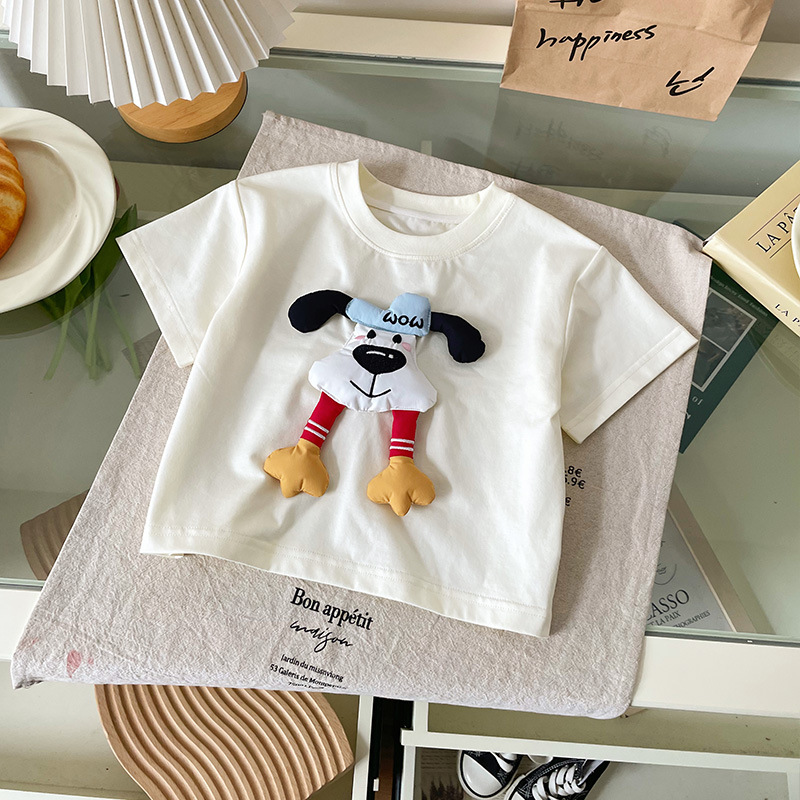 【재고 있음】XT253004 아동용 반팔 세트 2025 여름 신상 만화 입체 강아지 통기성 라운드넥스토어 가기