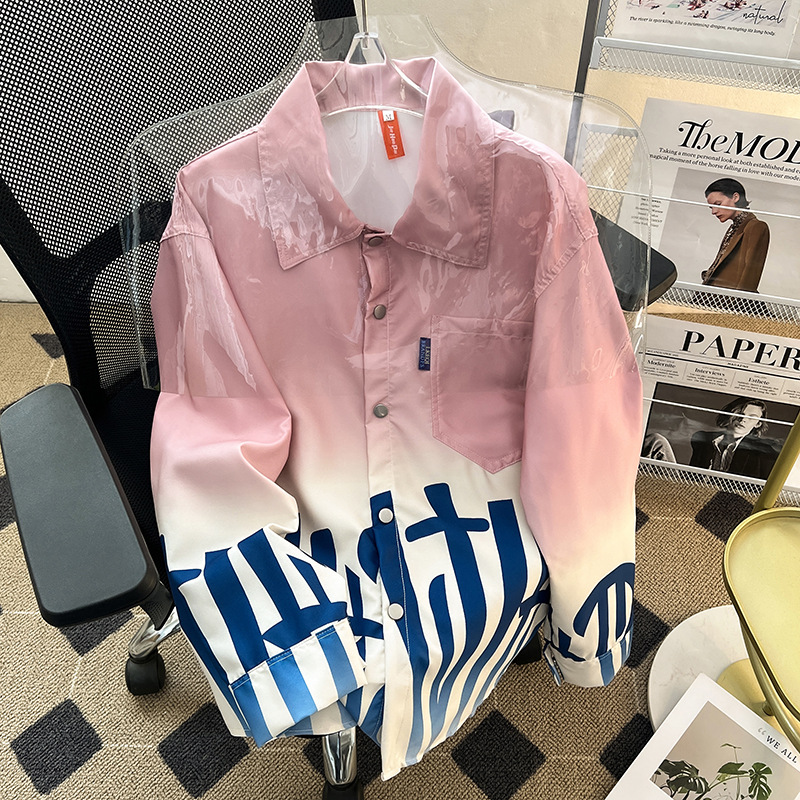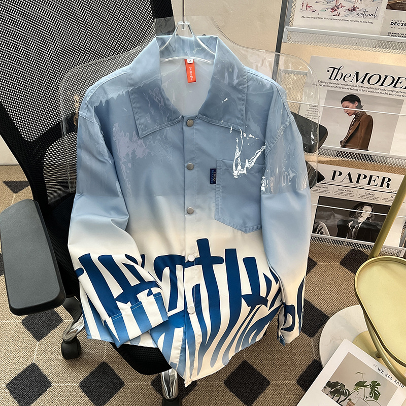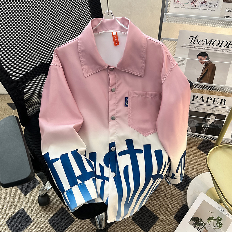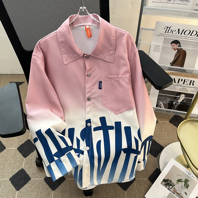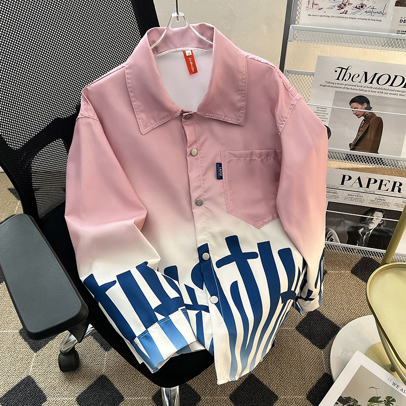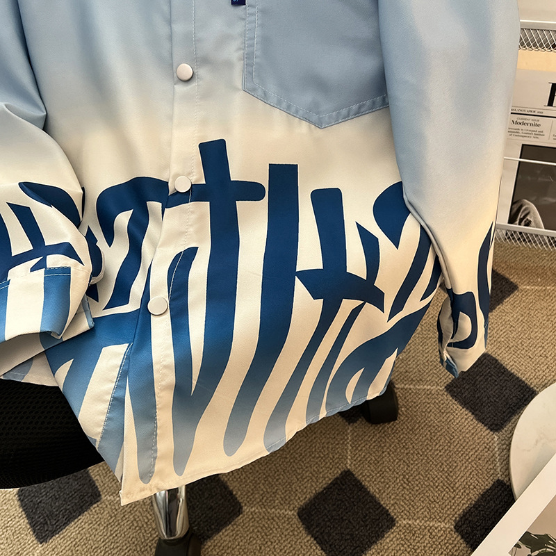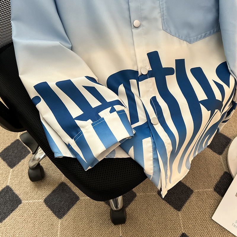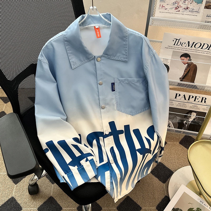 그라디언트 인쇄 카디건 셔츠 남성과 여성의 긴 소매 2025 봄과 가을 새로운 청소년 코트 버튼 옷깃 셔츠스토어 가기