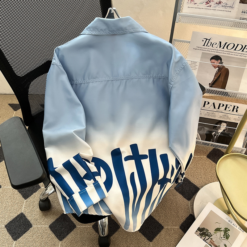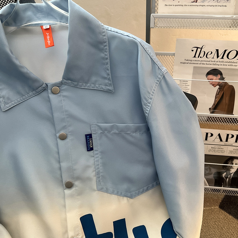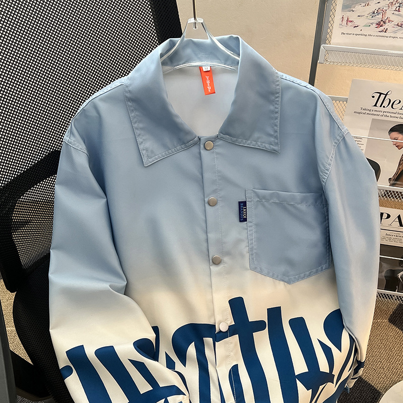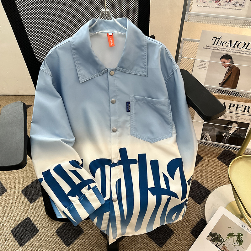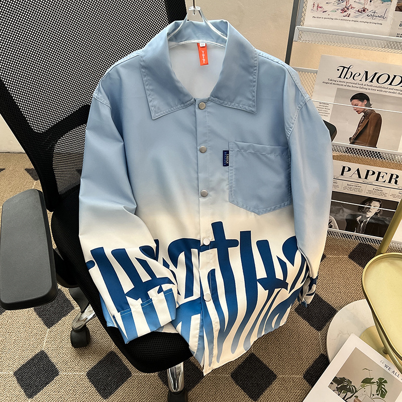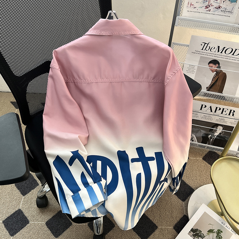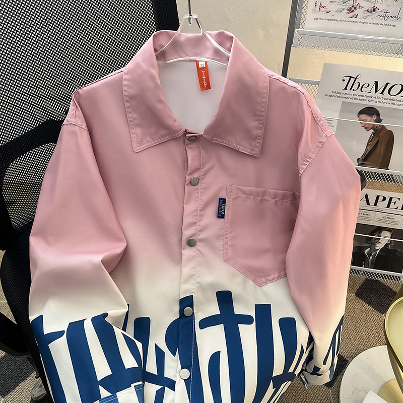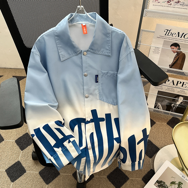 그라디언트 인쇄 카디건 셔츠 남성과 여성의 긴 소매 2025 봄과 가을 새로운 청소년 코트 버튼 옷깃 셔츠스토어 가기