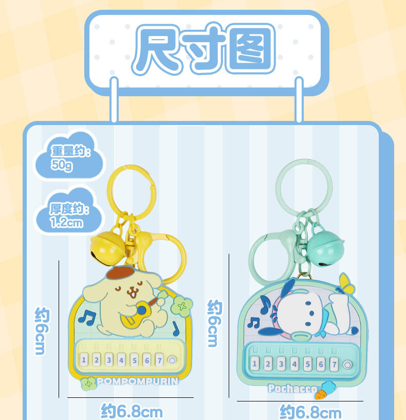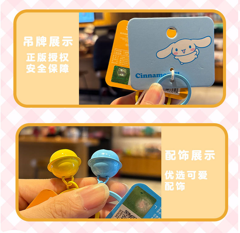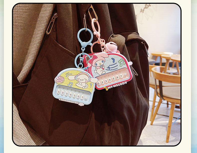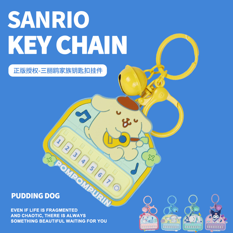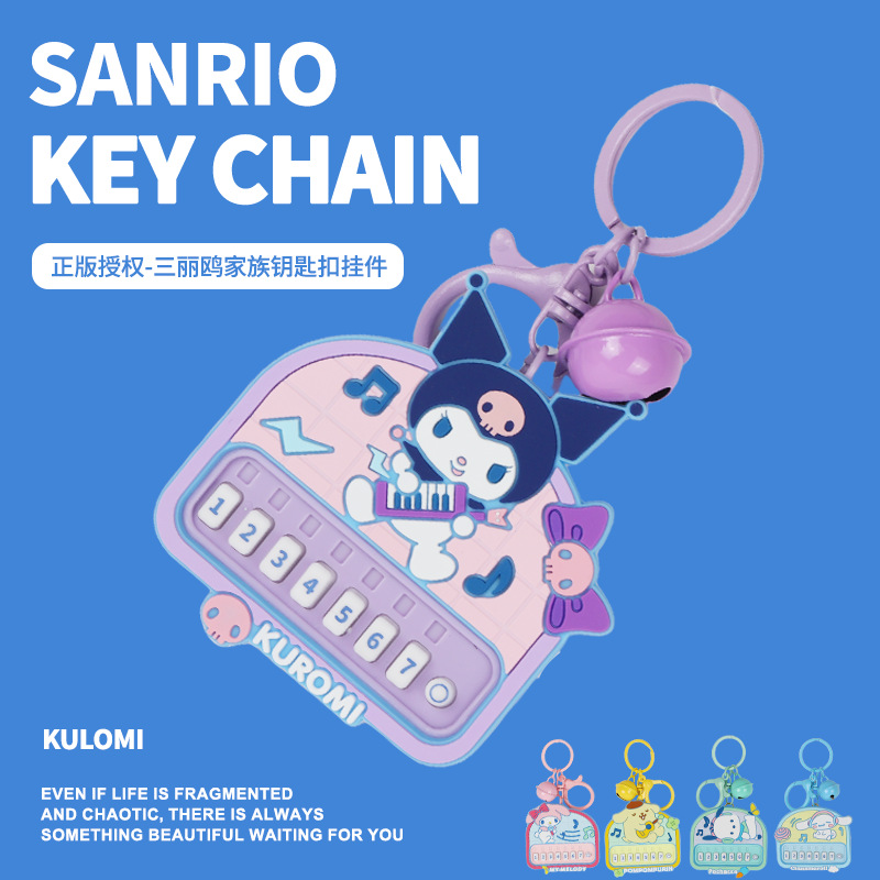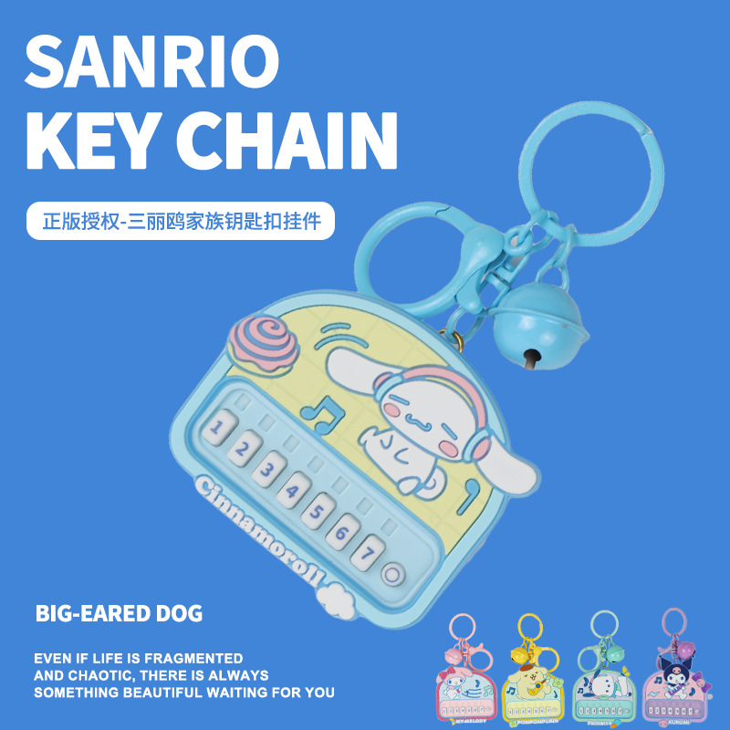 정품 Sanrio Kulomi 리듬 파티 키 체인 귀여운 계피 개 인형 가방 펜던트 감압 장난감스토어 가기