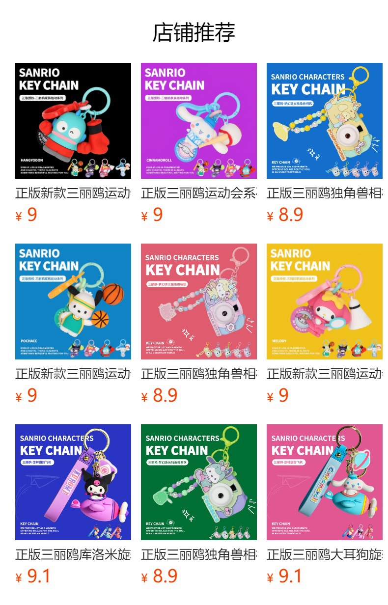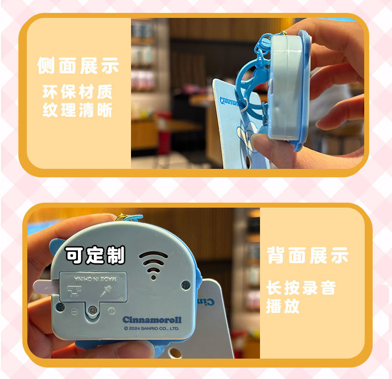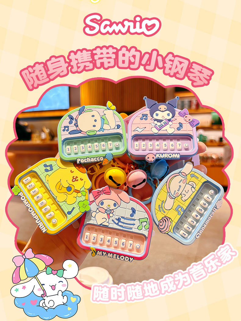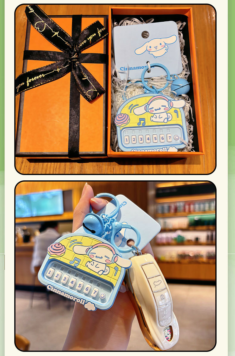 정품 Sanrio Kulomi 리듬 파티 키 체인 귀여운 계피 개 인형 가방 펜던트 감압 장난감스토어 가기