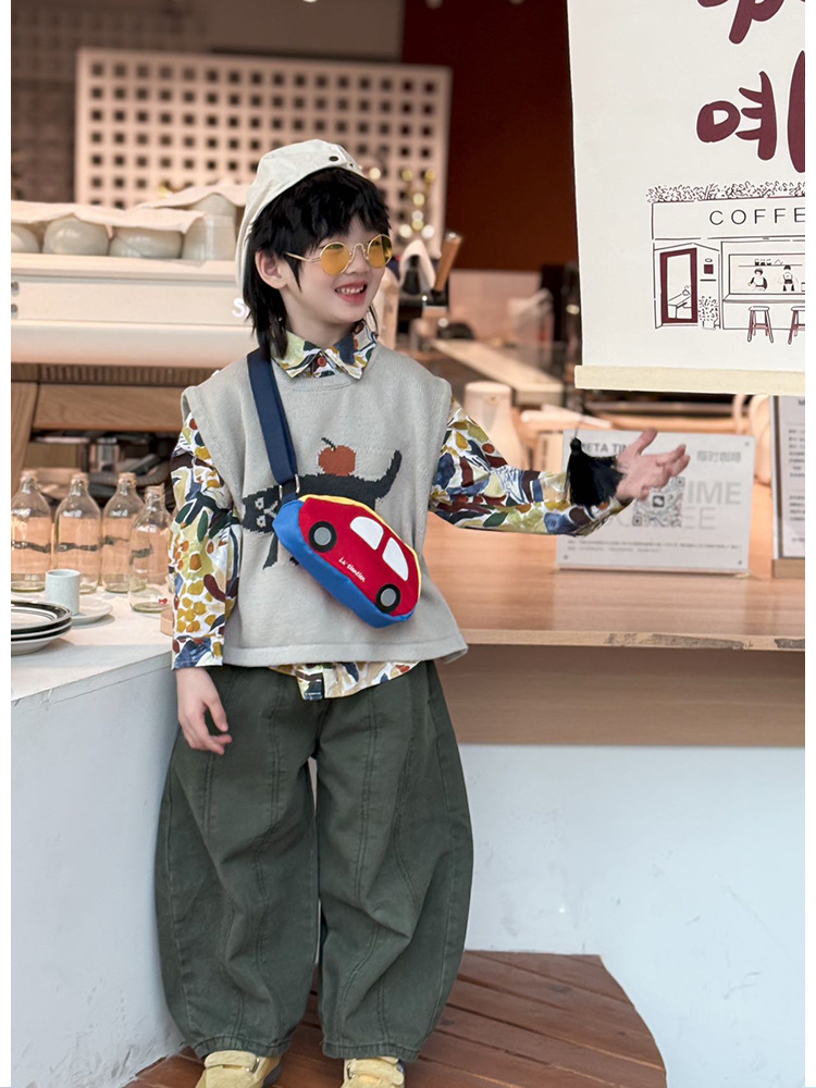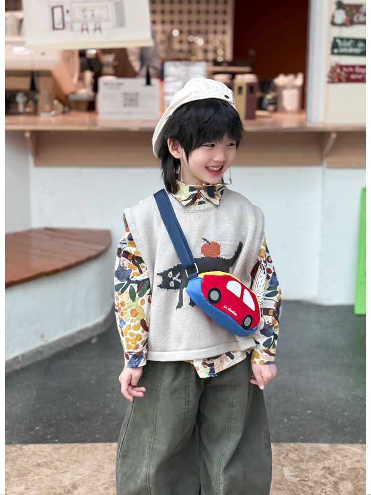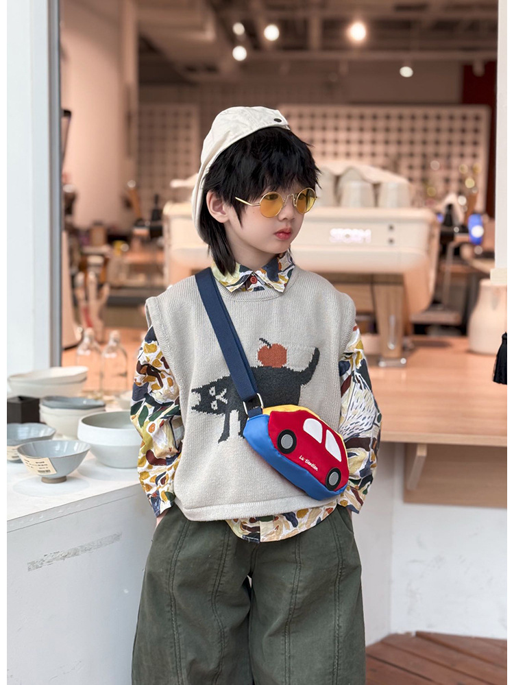 어린이 가방 2025 새로운 귀여운 만화 소년 아기 자동차 작은 사첼 스타일 작은 소년 동전 지갑 유행