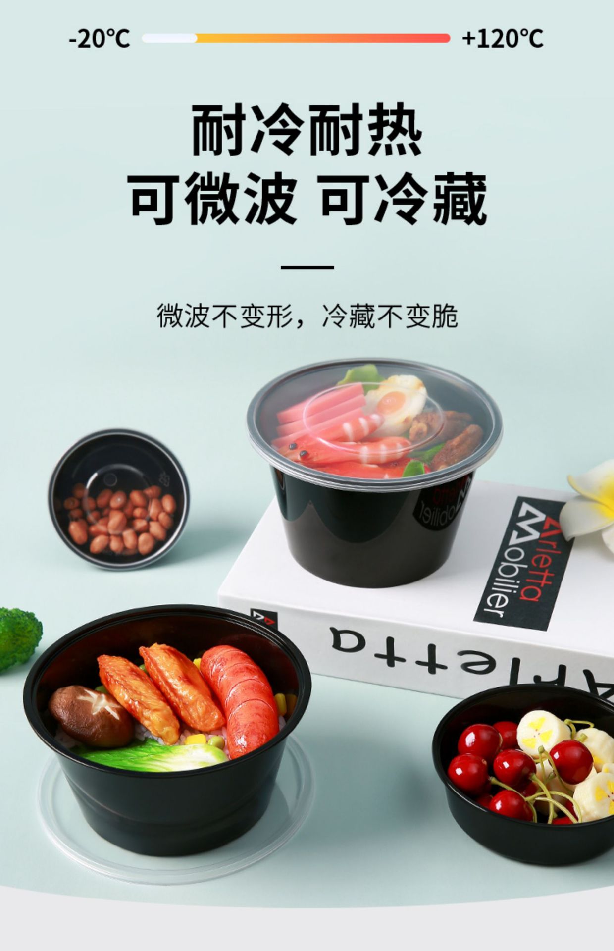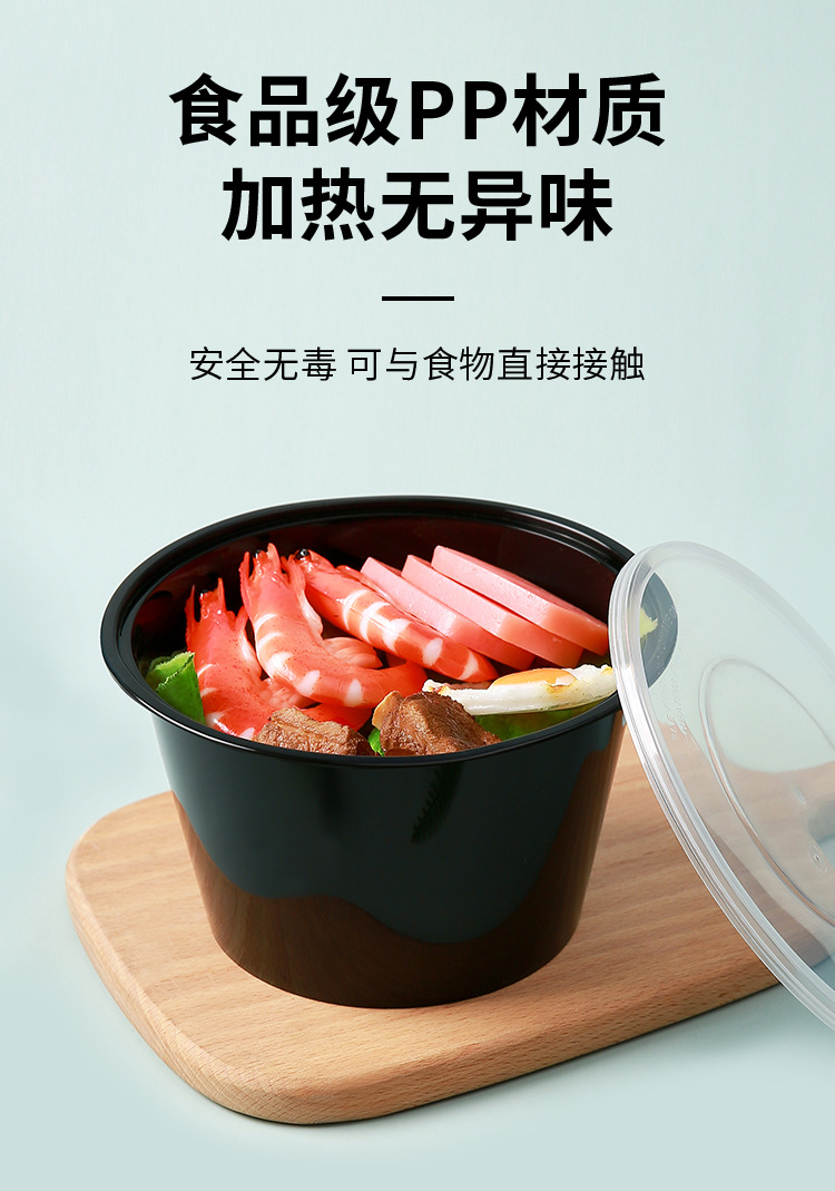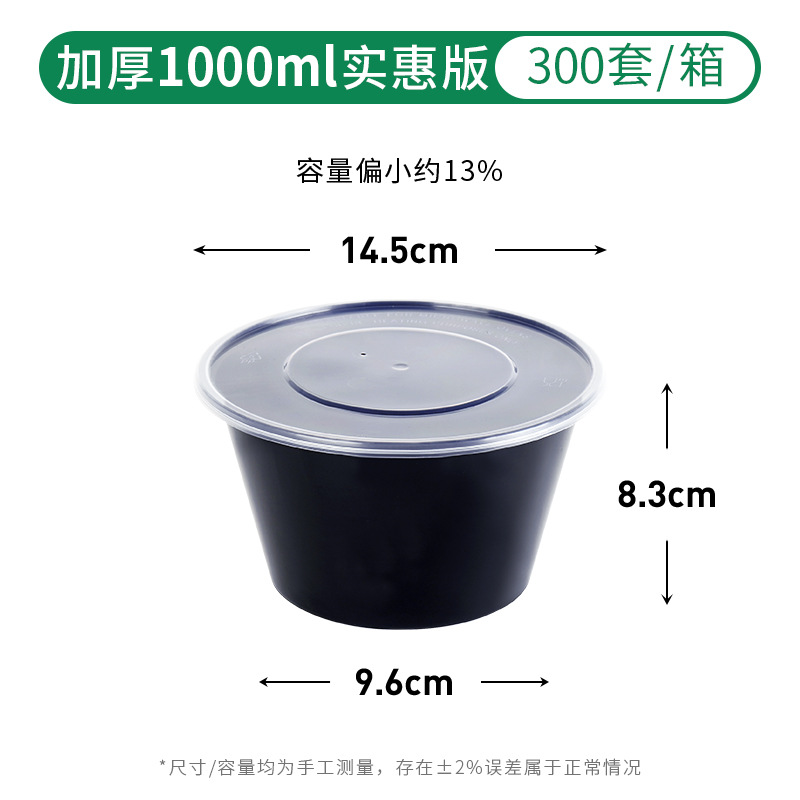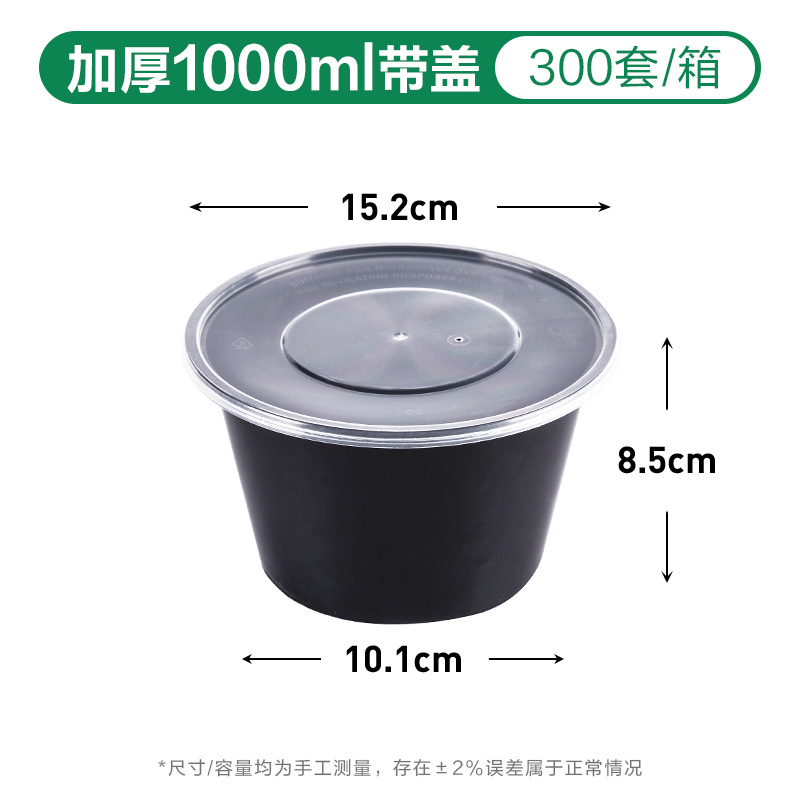 M 블랙 테이크 아웃 포장 상자 검은 두꺼운 수프 그릇 스낵 상자 도시락 라운드 1000ml 일회용 도시락스토어 가기