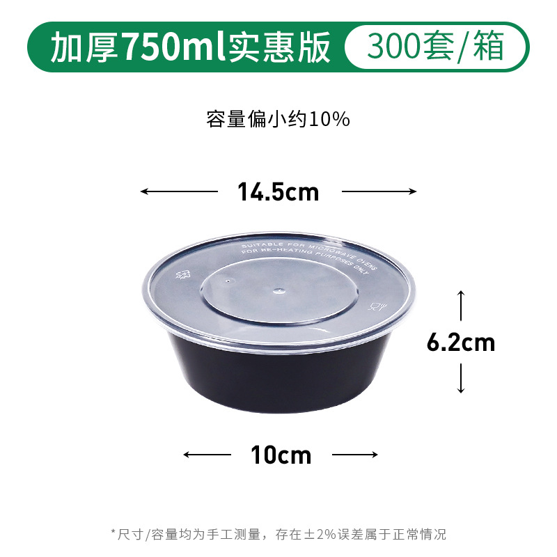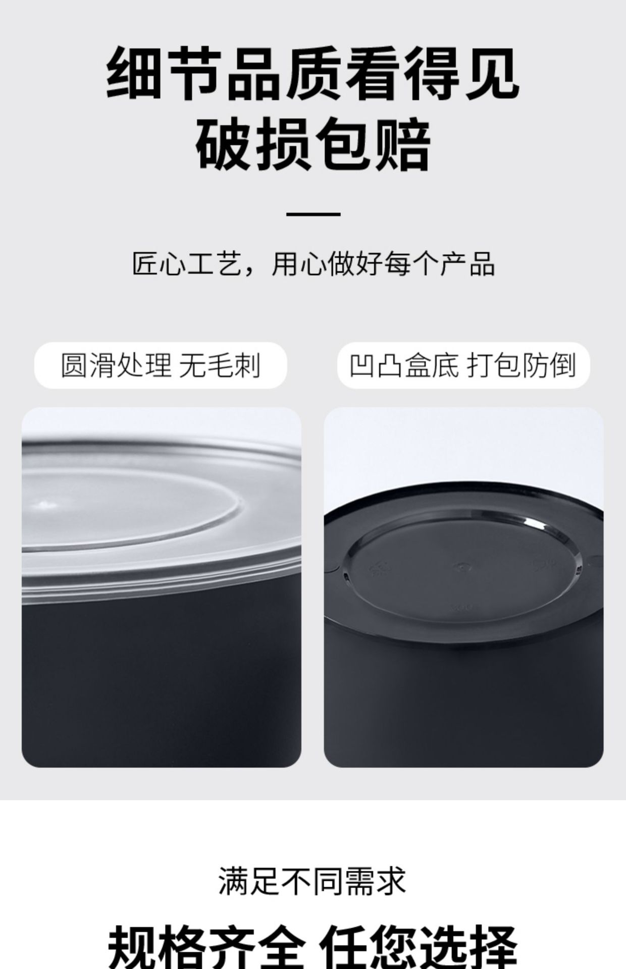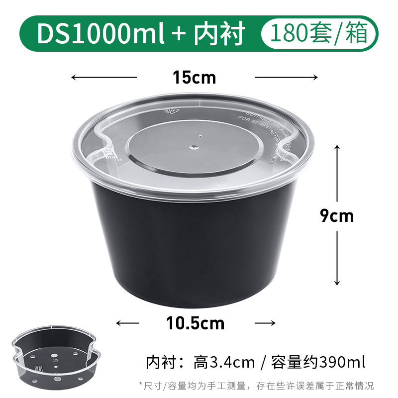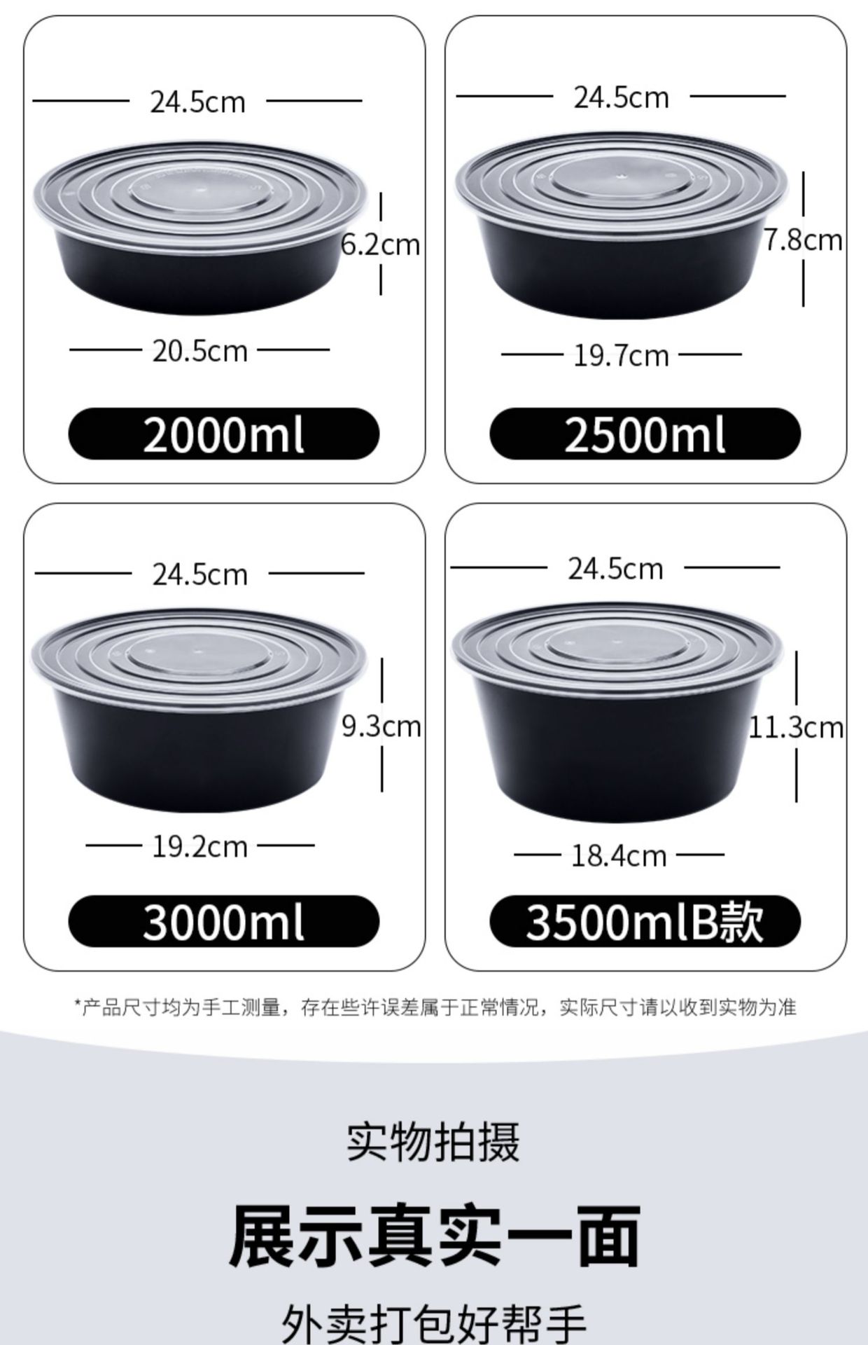 M 블랙 테이크 아웃 포장 상자 검은 두꺼운 수프 그릇 스낵 상자 도시락 라운드 1000ml 일회용 도시락스토어 가기
