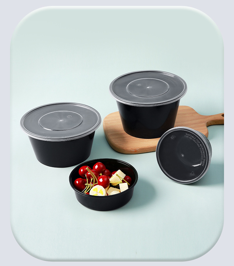 M 블랙 테이크 아웃 포장 상자 검은 두꺼운 수프 그릇 스낵 상자 도시락 라운드 1000ml 일회용 도시락