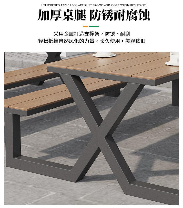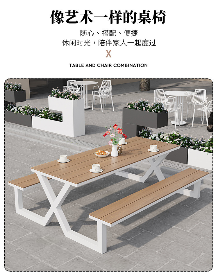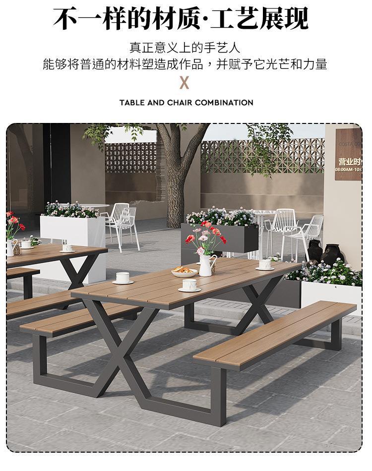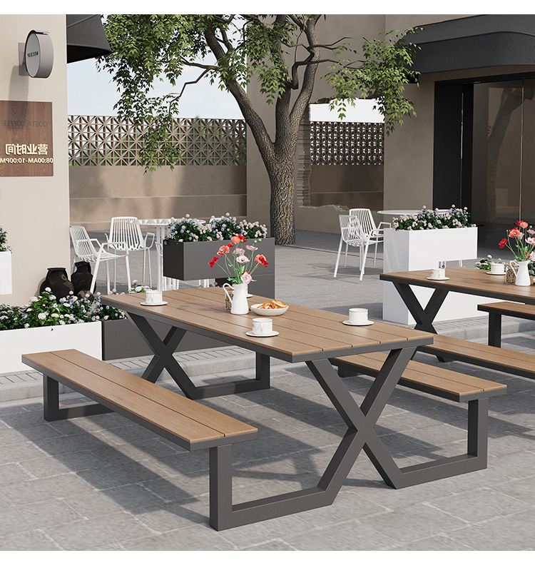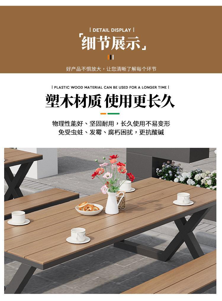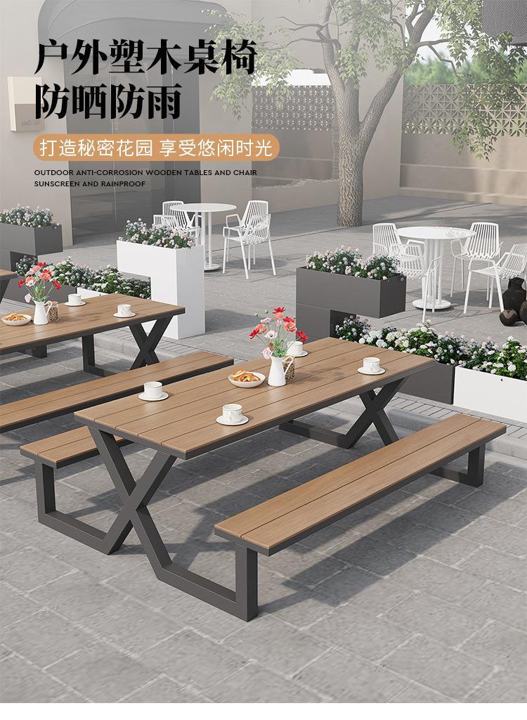 야외 결합 된 테이블과 의자 조합 플라스틱 나무 정원 안뜰 좌석 빌라 경치 좋은 공원 야외 태양 보호 테이블 상업스토어 가기