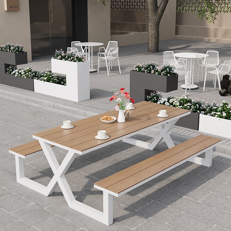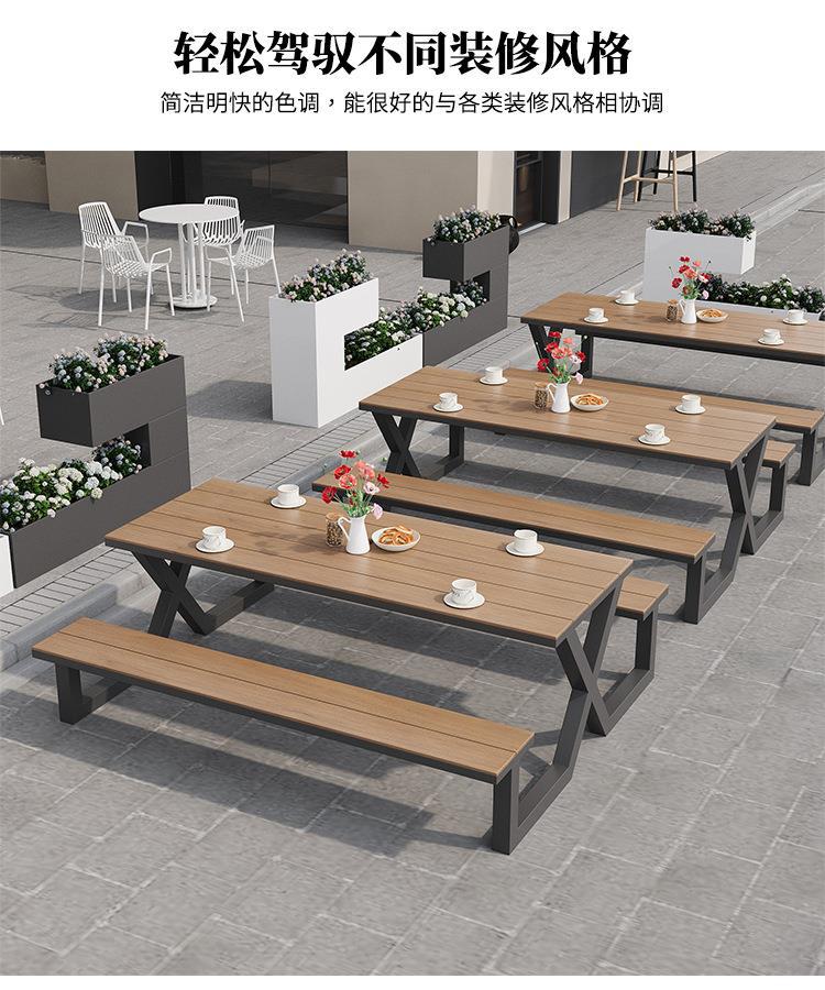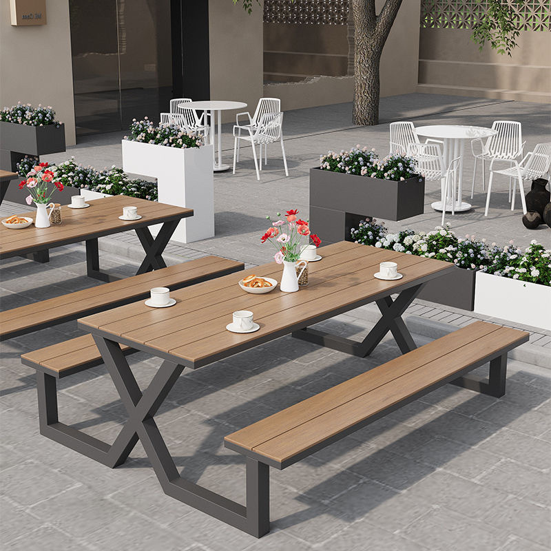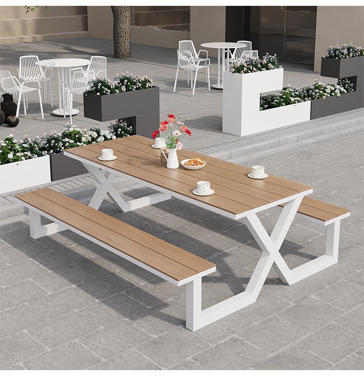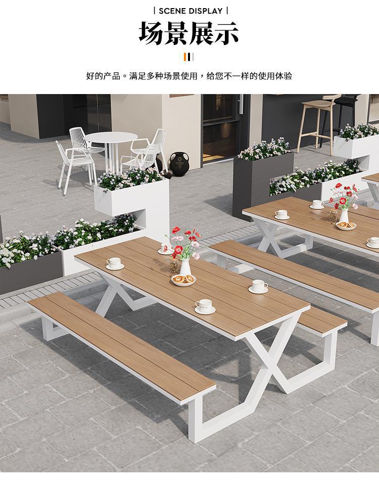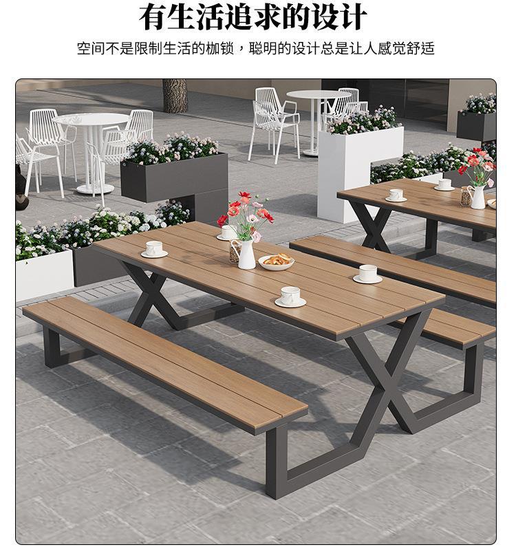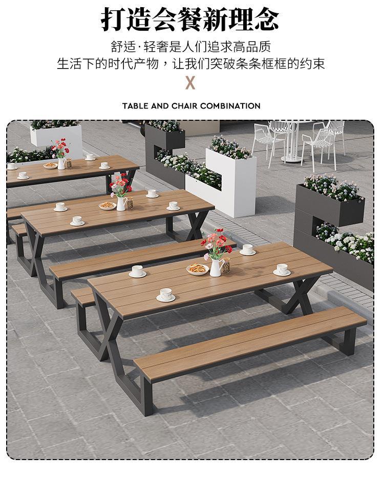 야외 결합 된 테이블과 의자 조합 플라스틱 나무 정원 안뜰 좌석 빌라 경치 좋은 공원 야외 태양 보호 테이블 상업스토어 가기