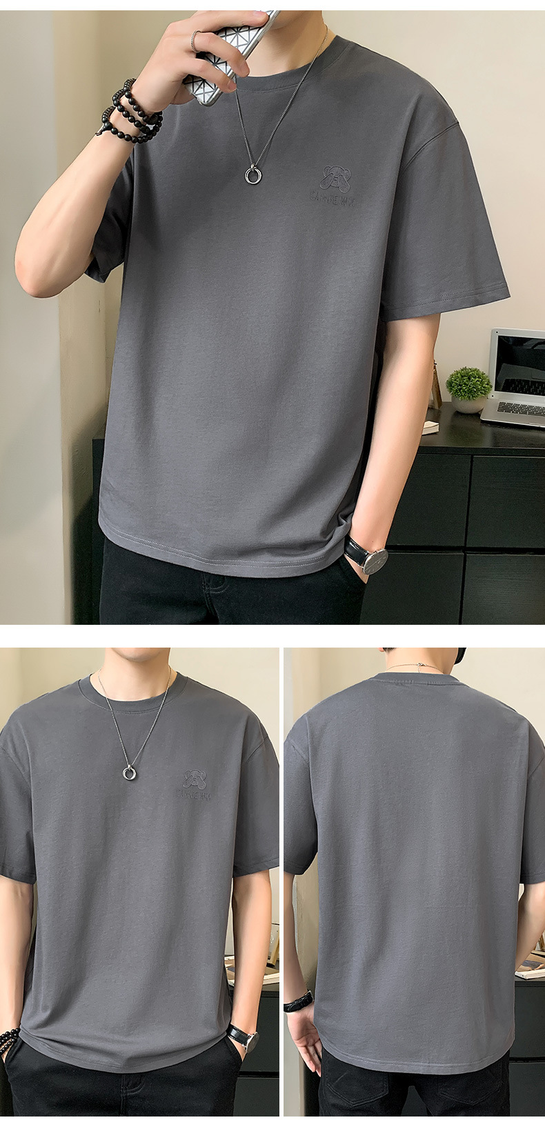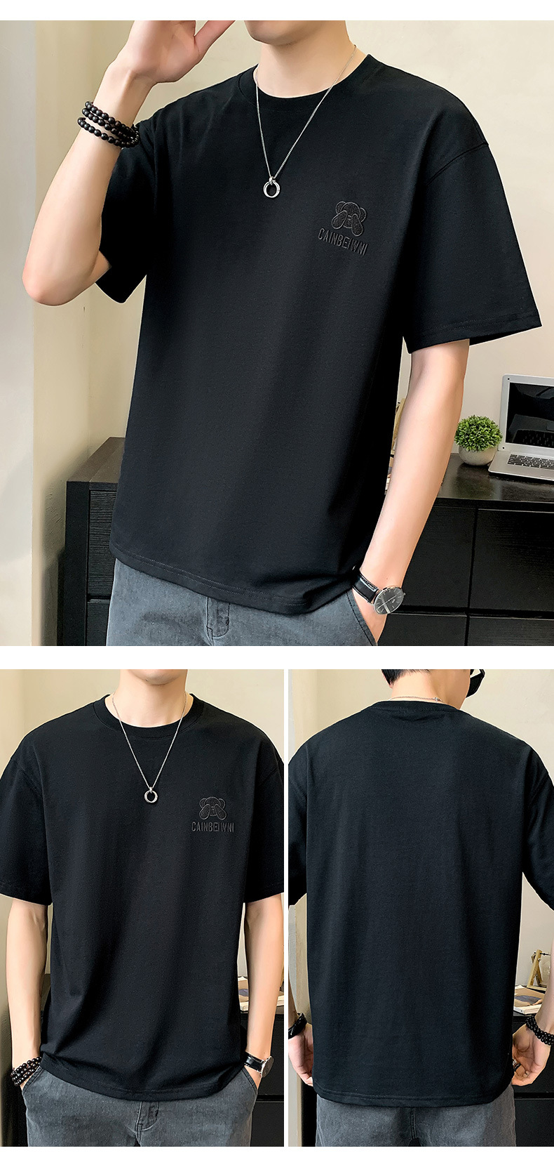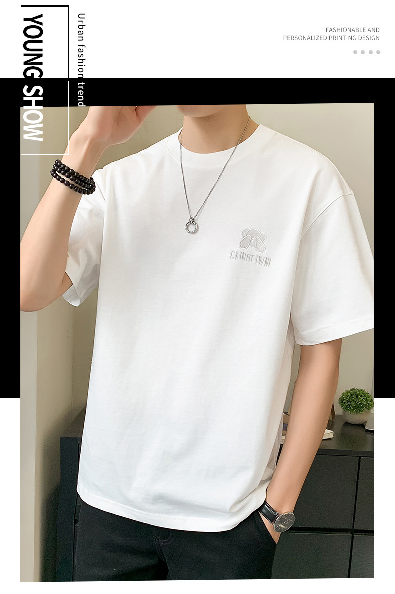 베어 반소매 남성용 여름 2025 새로운 도착 화이트 트렌디 브랜드 느슨한 얇은 아이스 실크 반소매 남성용 티셔츠