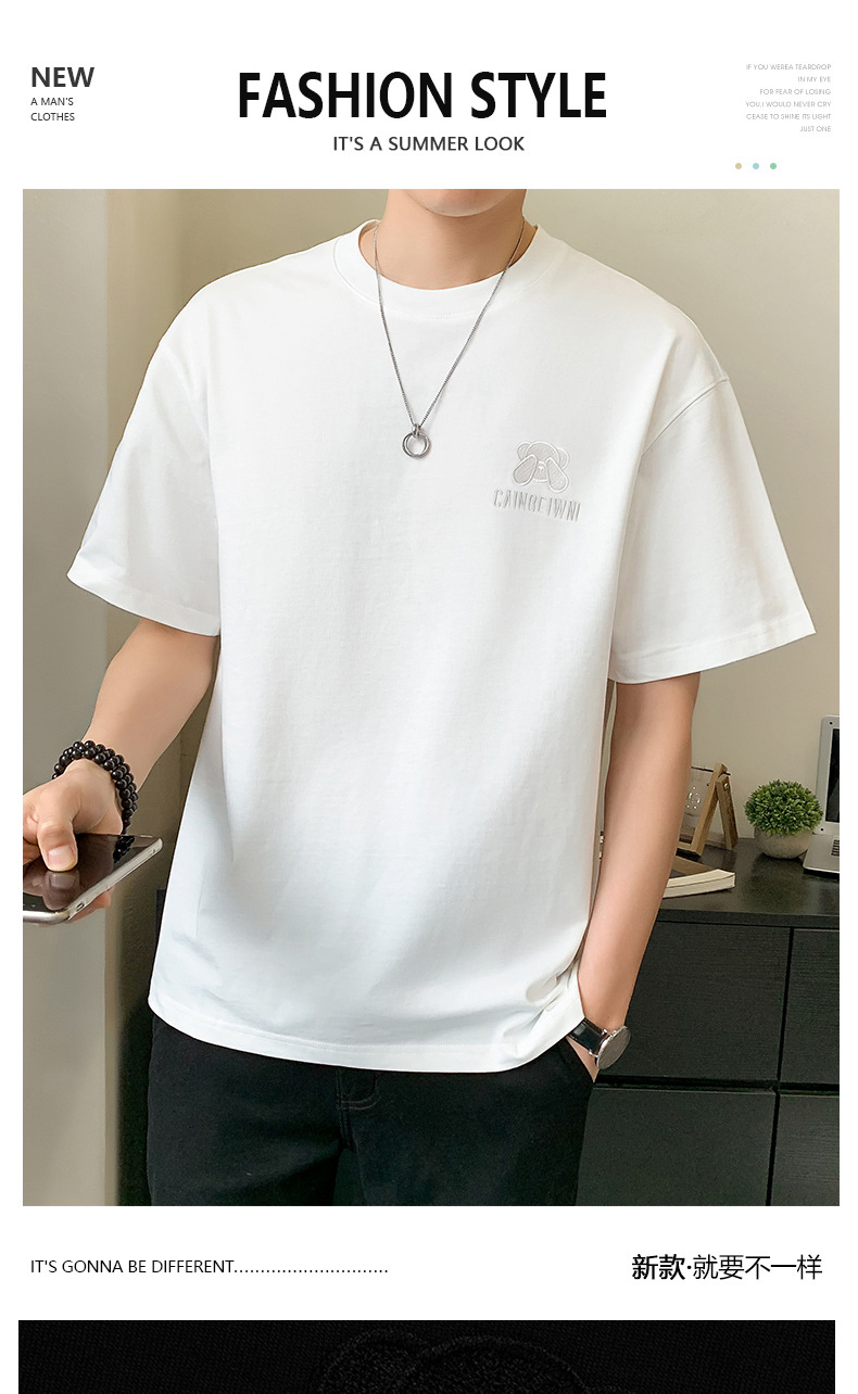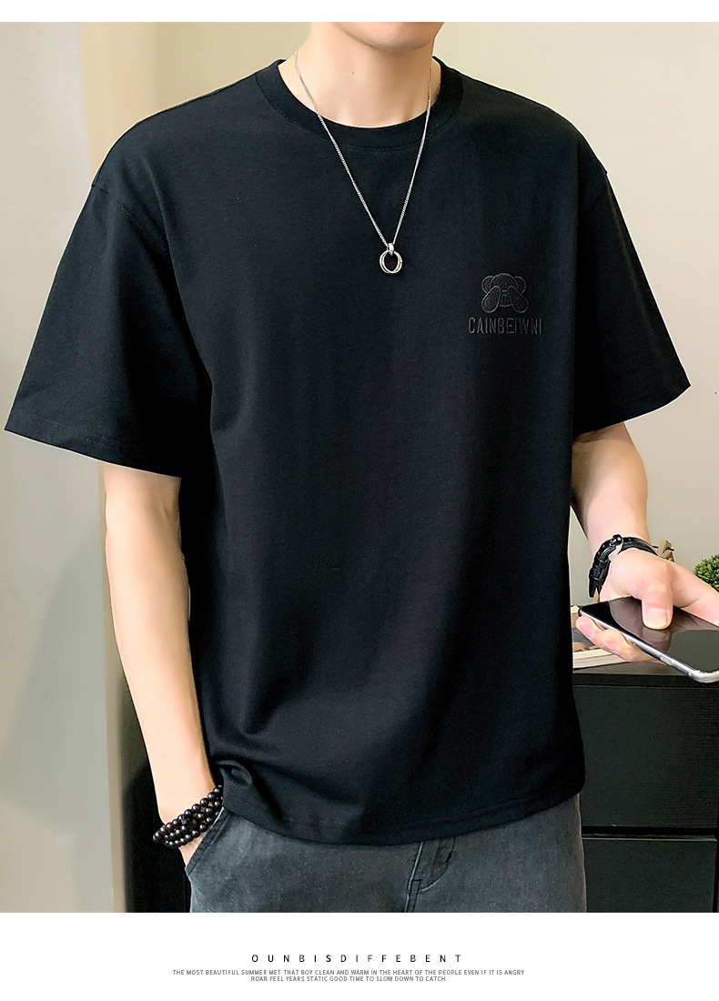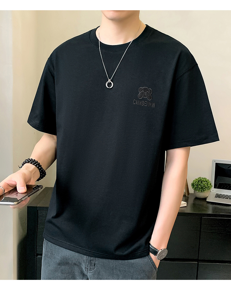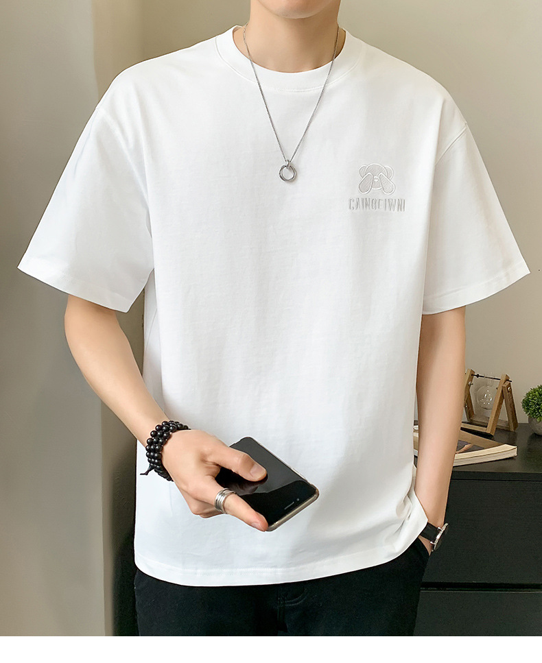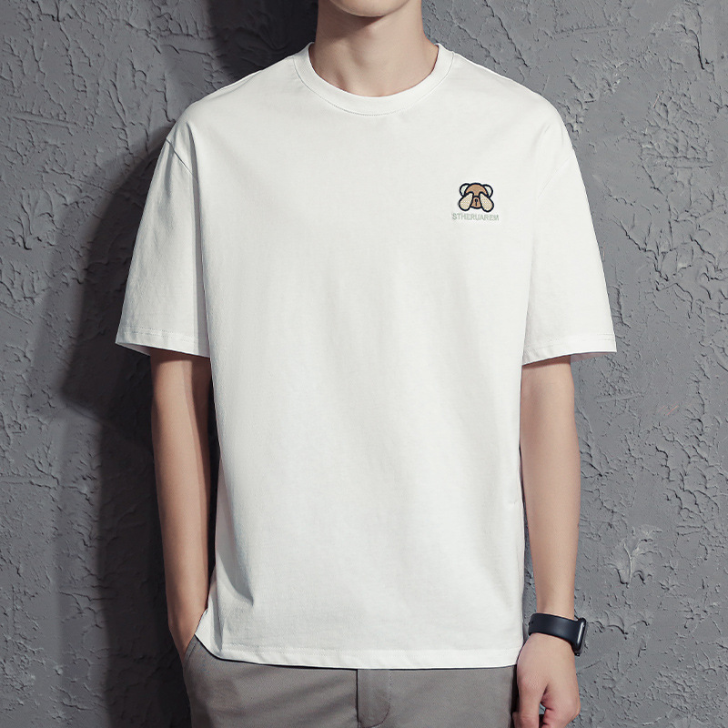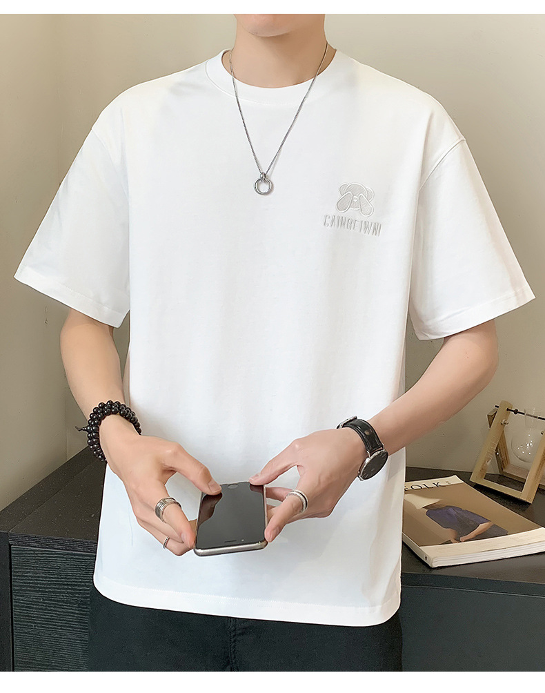 베어 반소매 남성용 여름 2025 새로운 도착 화이트 트렌디 브랜드 느슨한 얇은 아이스 실크 반소매 남성용 티셔츠스토어 가기