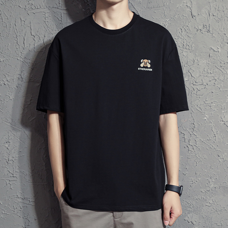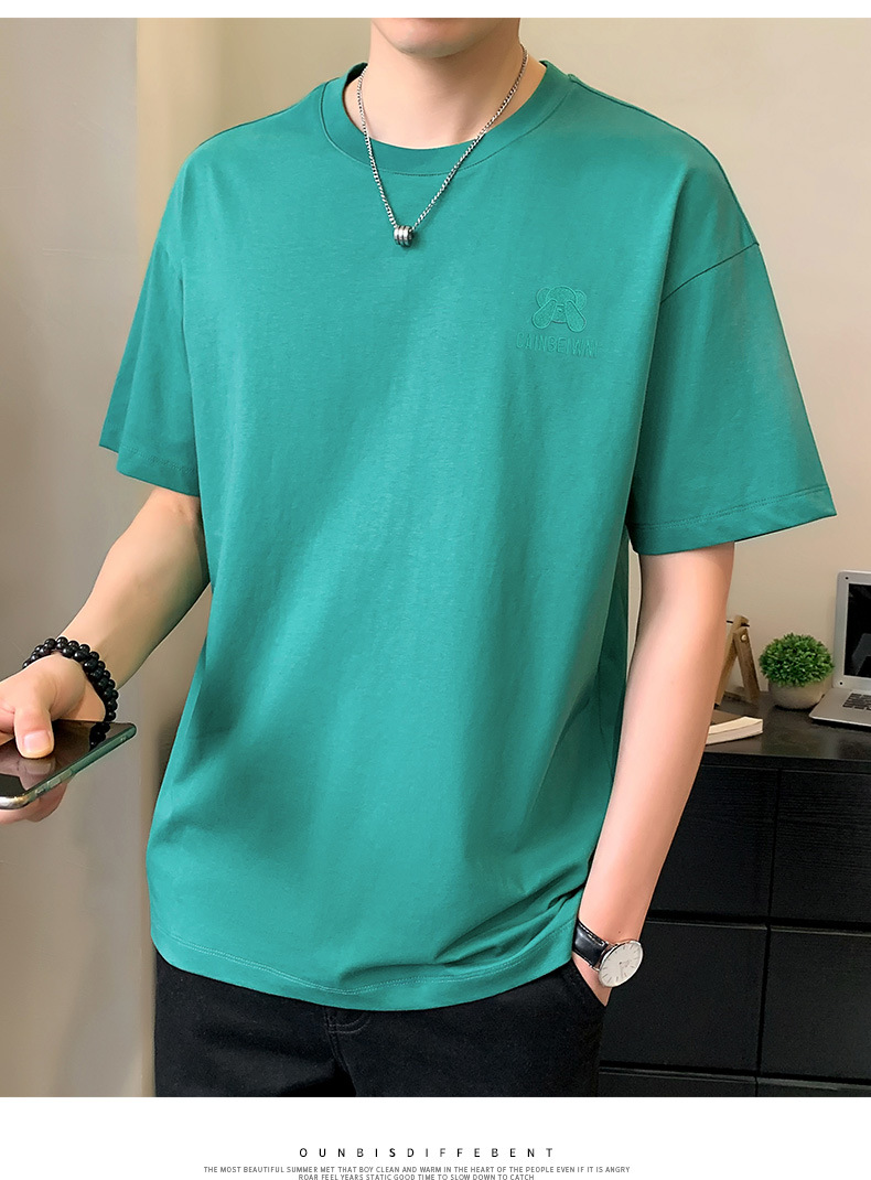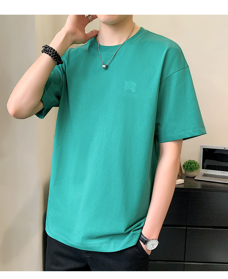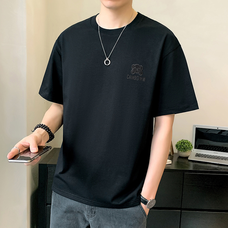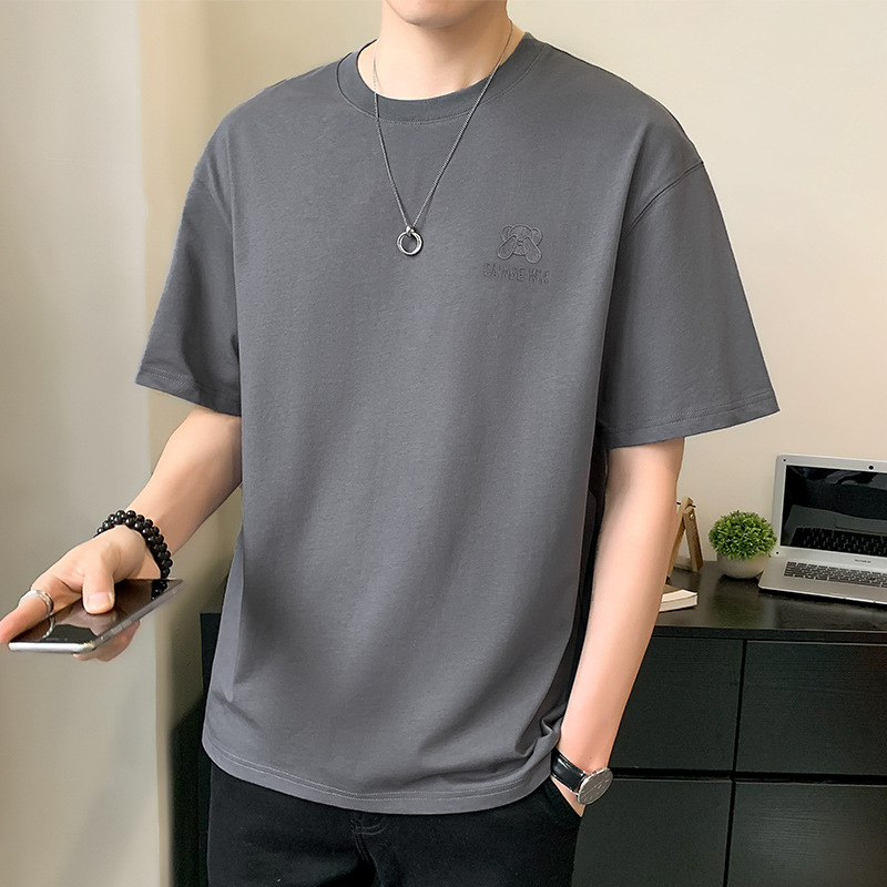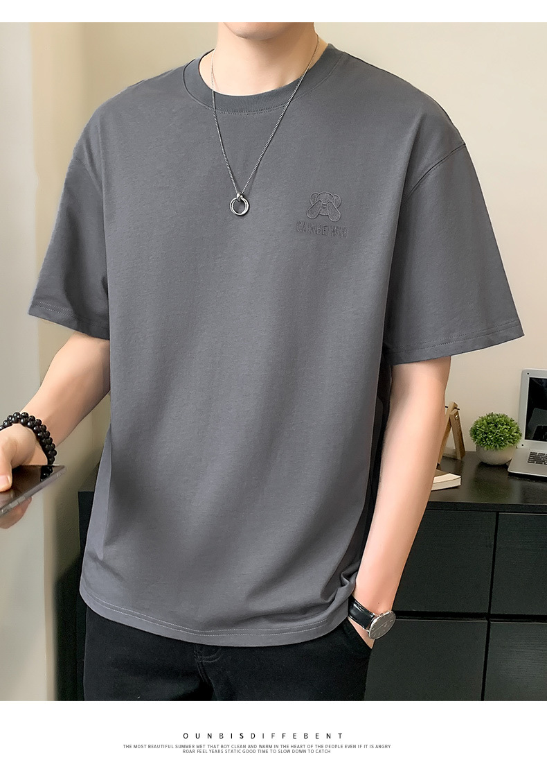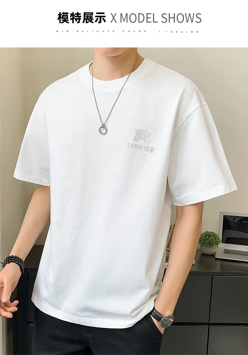 베어 반소매 남성용 여름 2025 새로운 도착 화이트 트렌디 브랜드 느슨한 얇은 아이스 실크 반소매 남성용 티셔츠스토어 가기