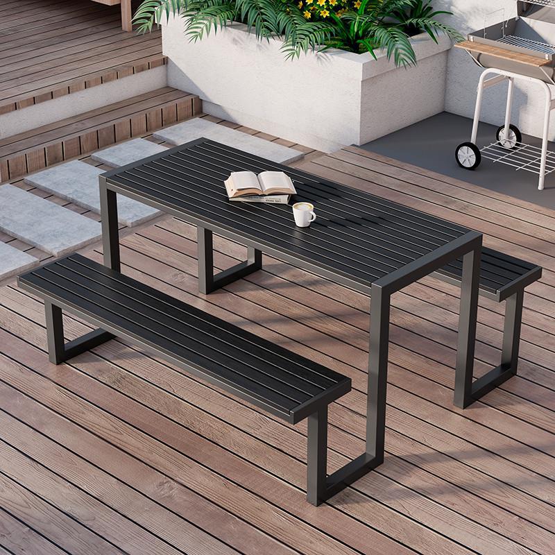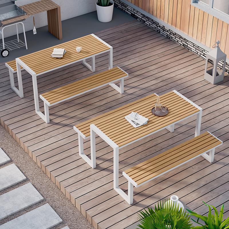 야외 결합 된 테이블과 의자 조합 야외 안뜰 공원 통합 방수 테이블 플라스틱 나무 오픈 스퀘어 식탁과 의자