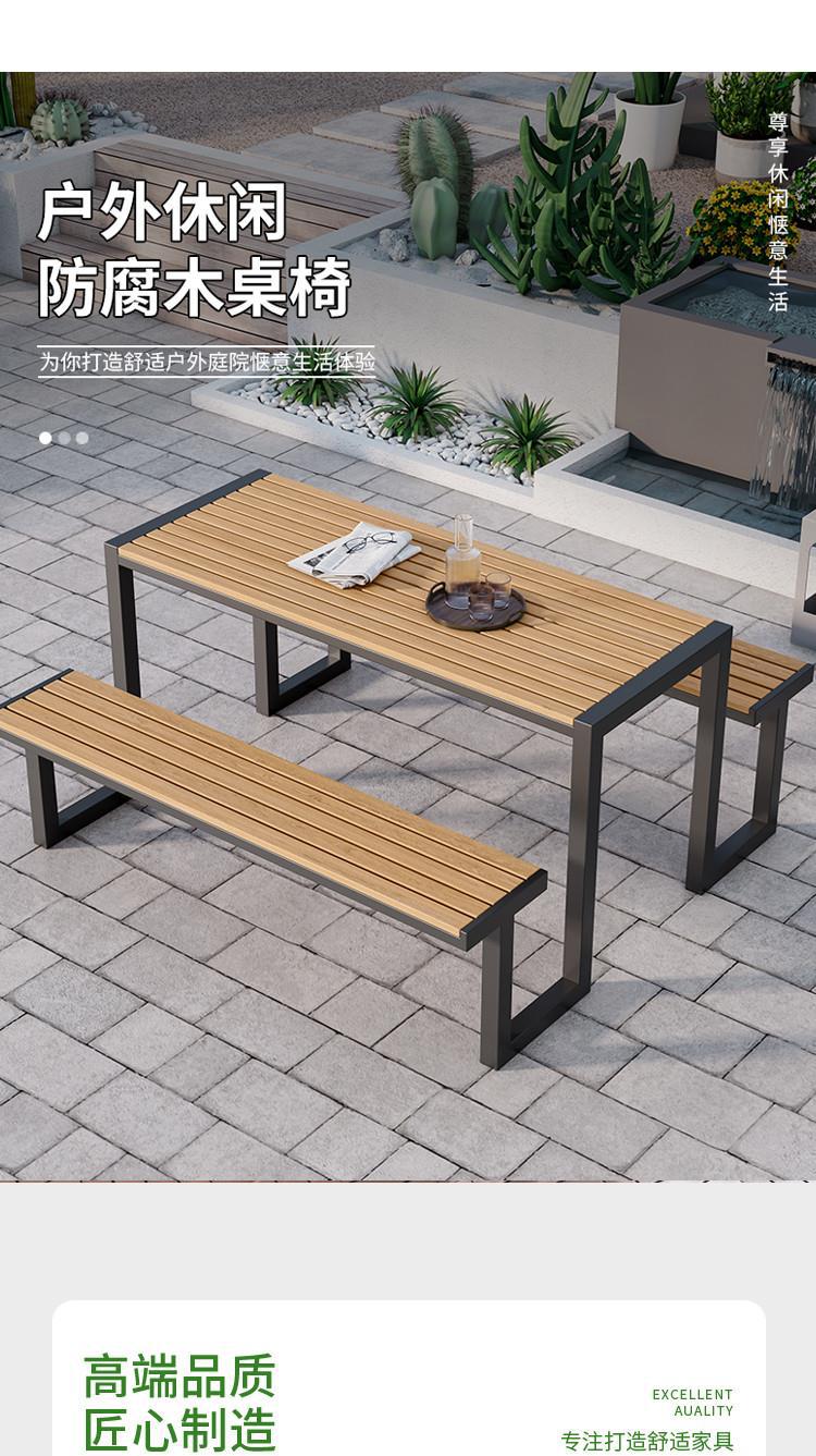 야외 결합 된 테이블과 의자 조합 야외 안뜰 공원 통합 방수 테이블 플라스틱 나무 오픈 스퀘어 식탁과 의자스토어 가기