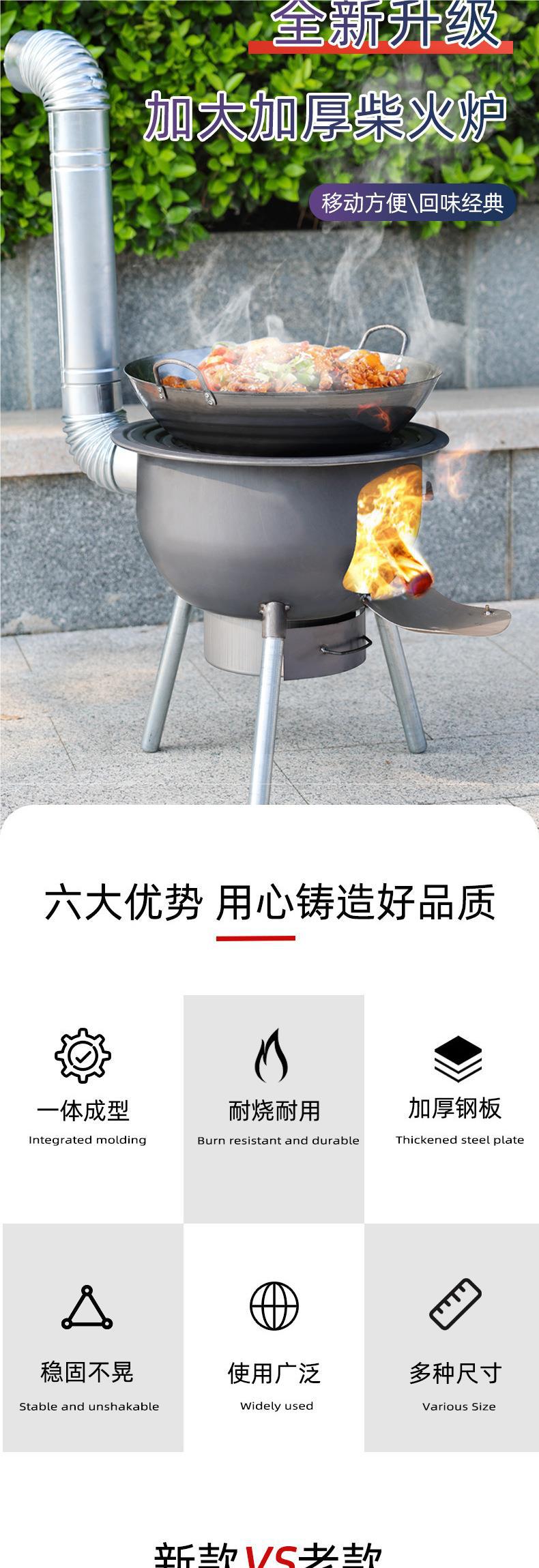 새로운 유형의 우드 스토브 가정용 나무 불타는 농촌 모바일 우드 스토브 큰 냄비 스토브 테이블 야외 무연 스토브