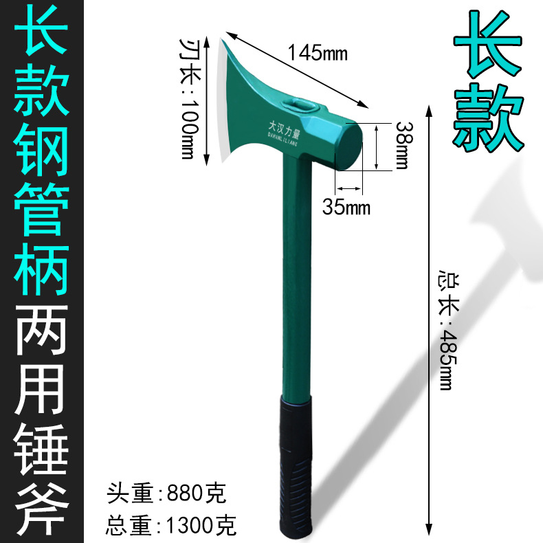 • 긴 강철 파이프 손잡이가 있는 이중 목적 망치 도끼