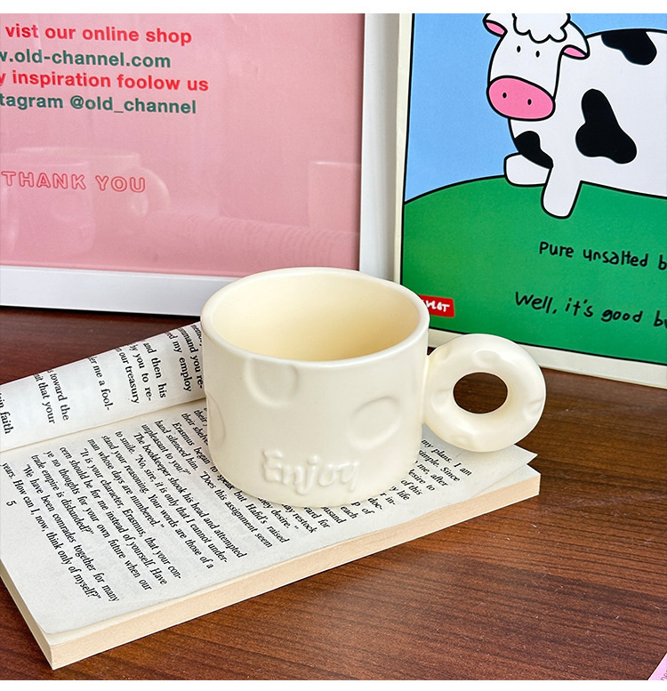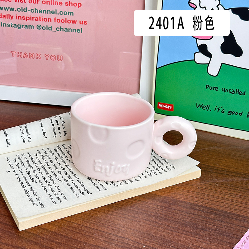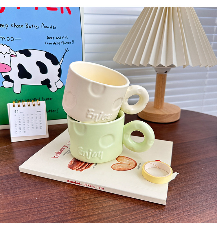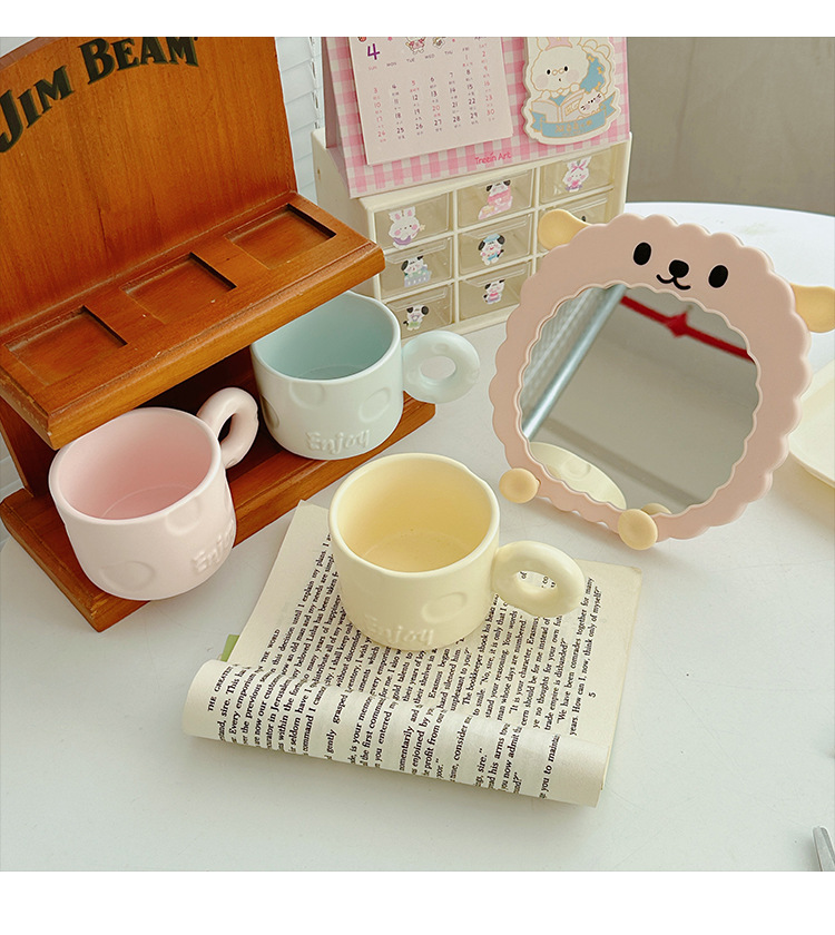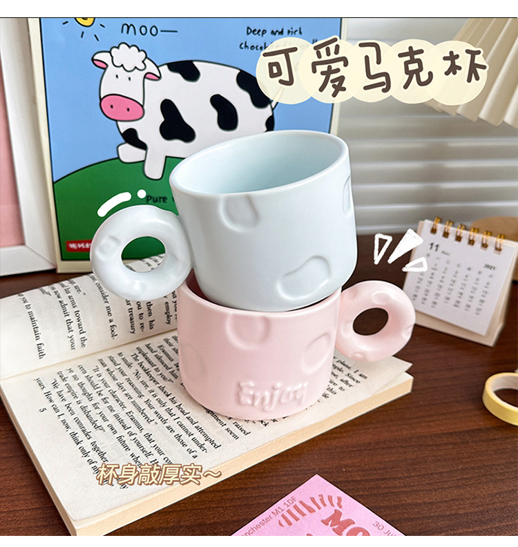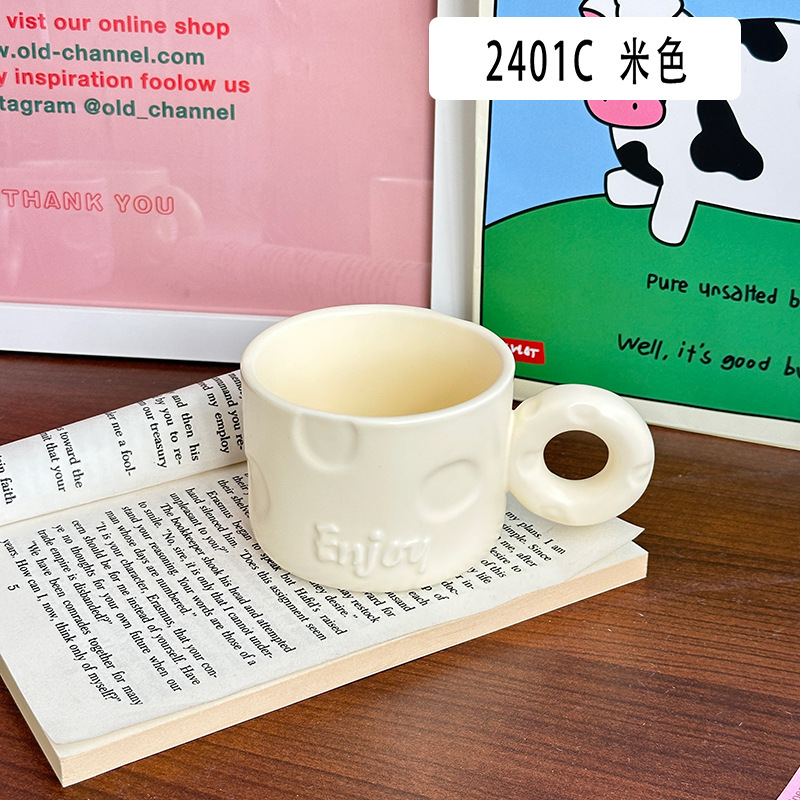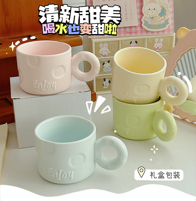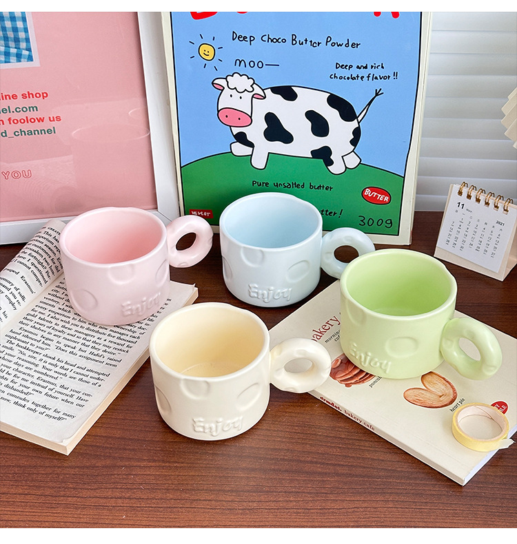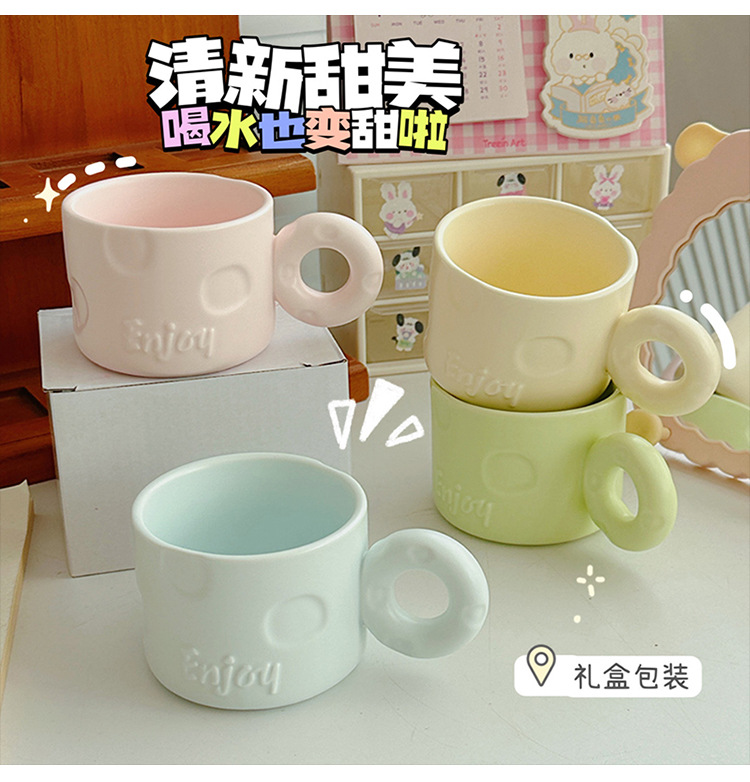 북유럽 크리 에이 티브 우유 fufu 세라믹 커피 컵 틈새 디자인 귀여운 단색 고가치 가정용 세라믹 워터 컵스토어 가기