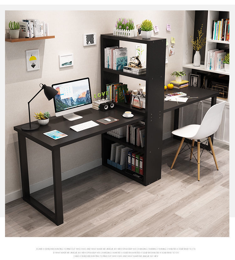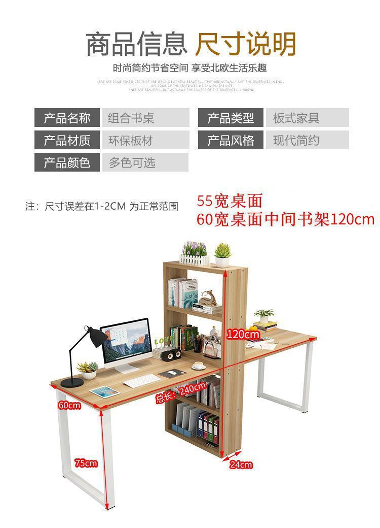 간단한 가정용 2 인용 데스크톱 컴퓨터 책상 책장 통합 테이블 경제적 인 학생 쓰기 책상 조합 책장스토어 가기