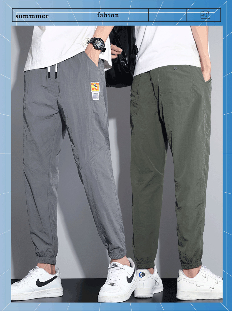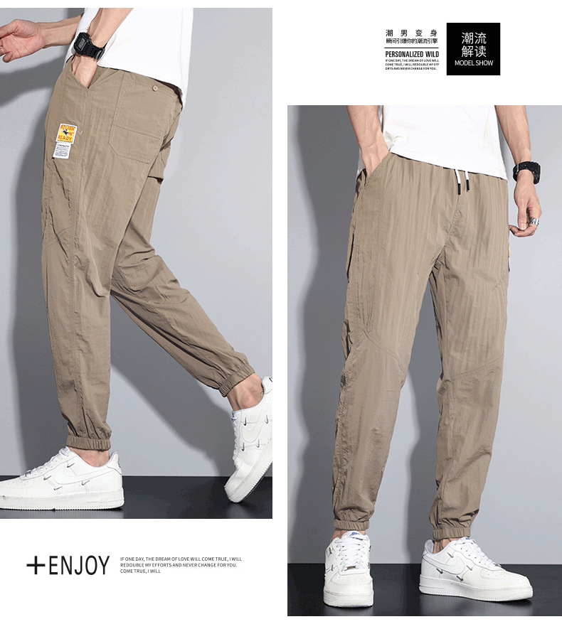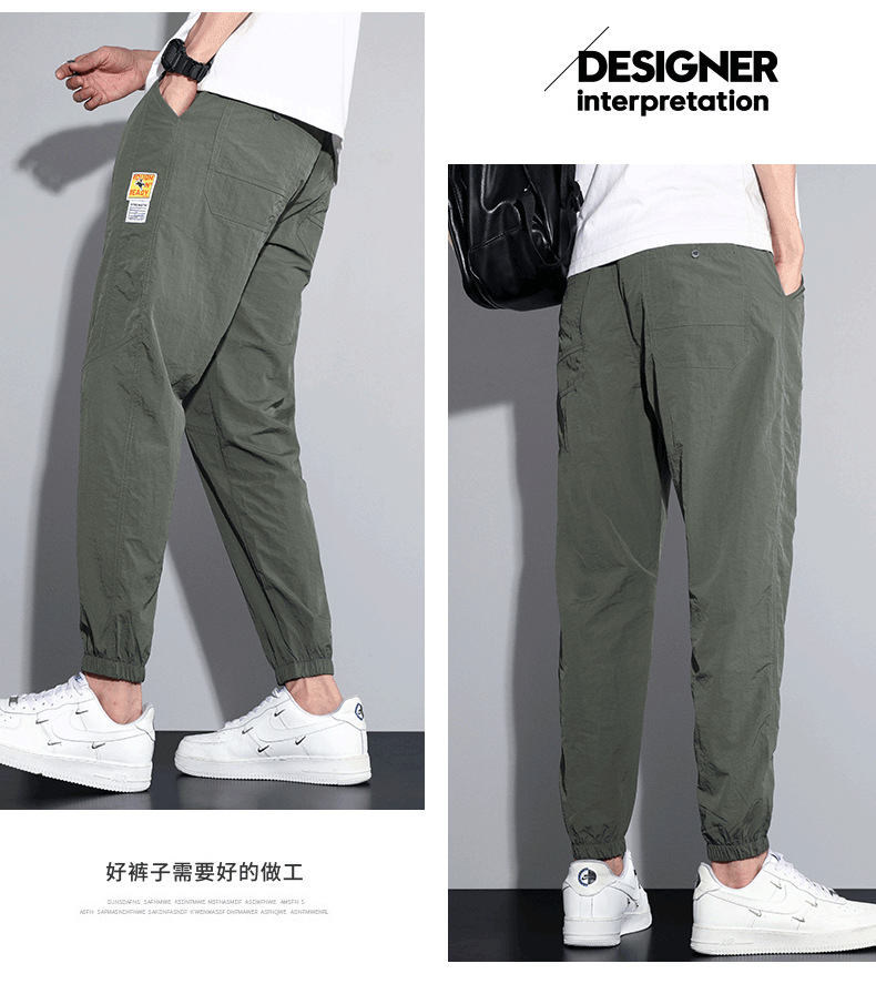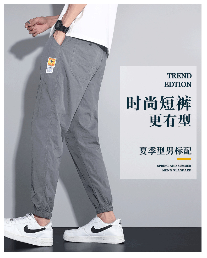 여름 남자 얇은 캐주얼 자른 바지 마이크로 할란 아이스 실크 다리 허리스토어 가기