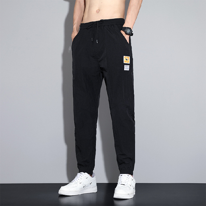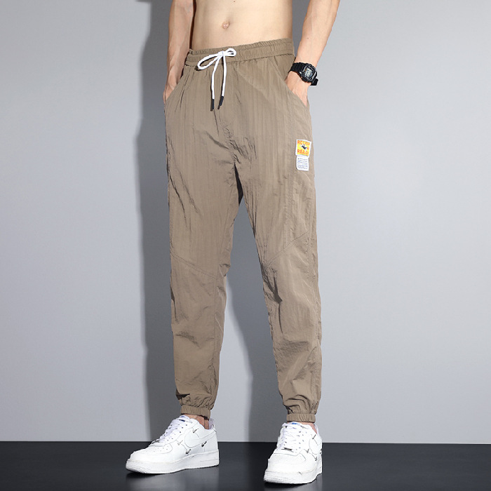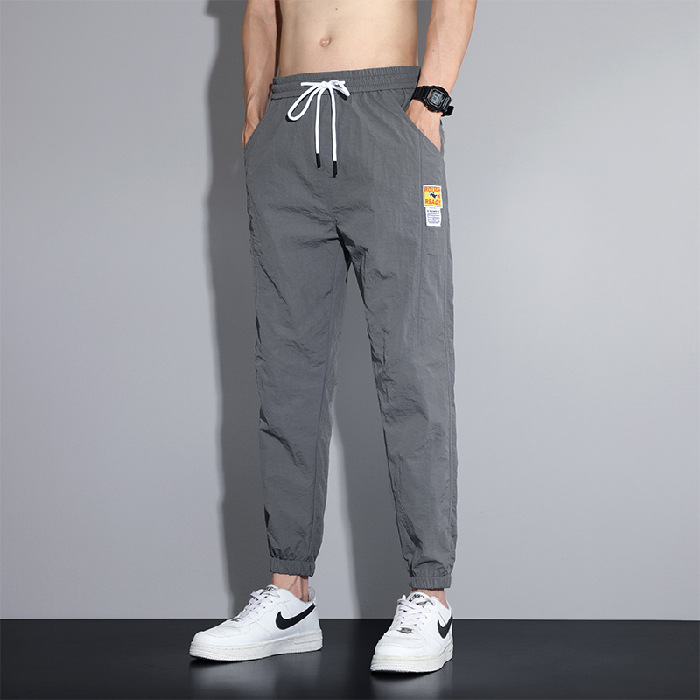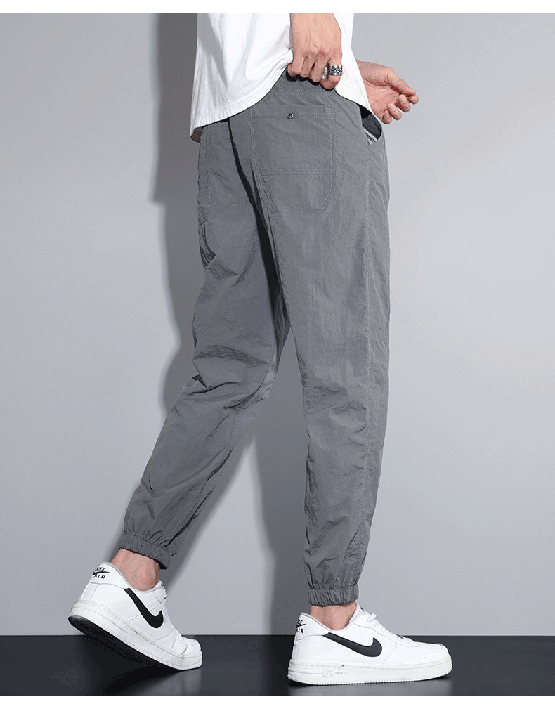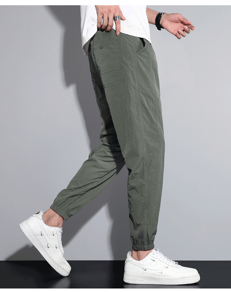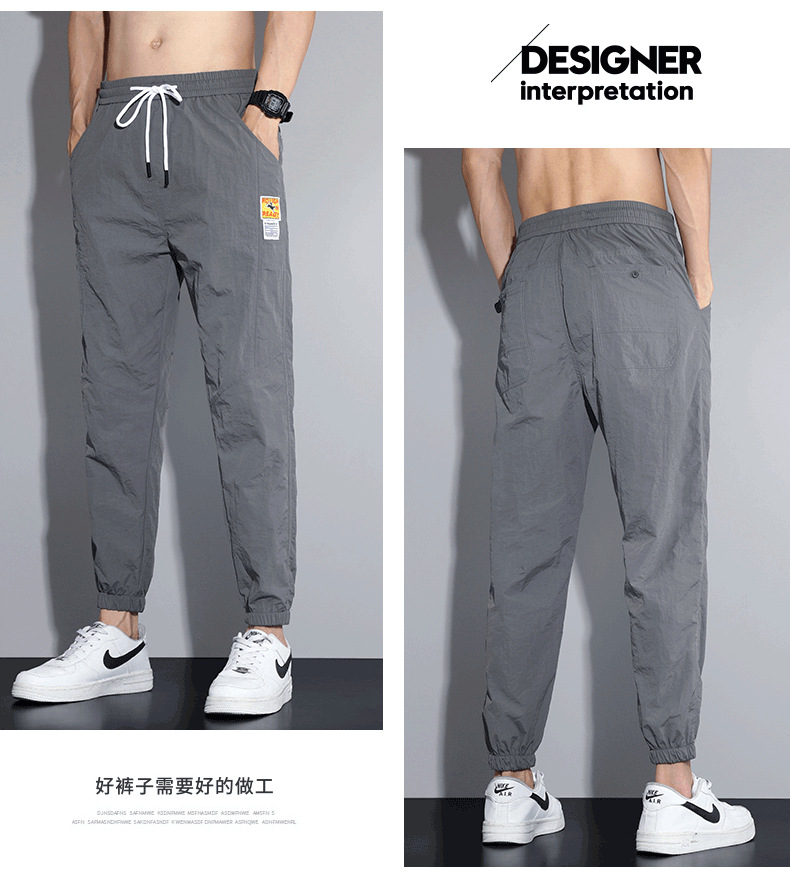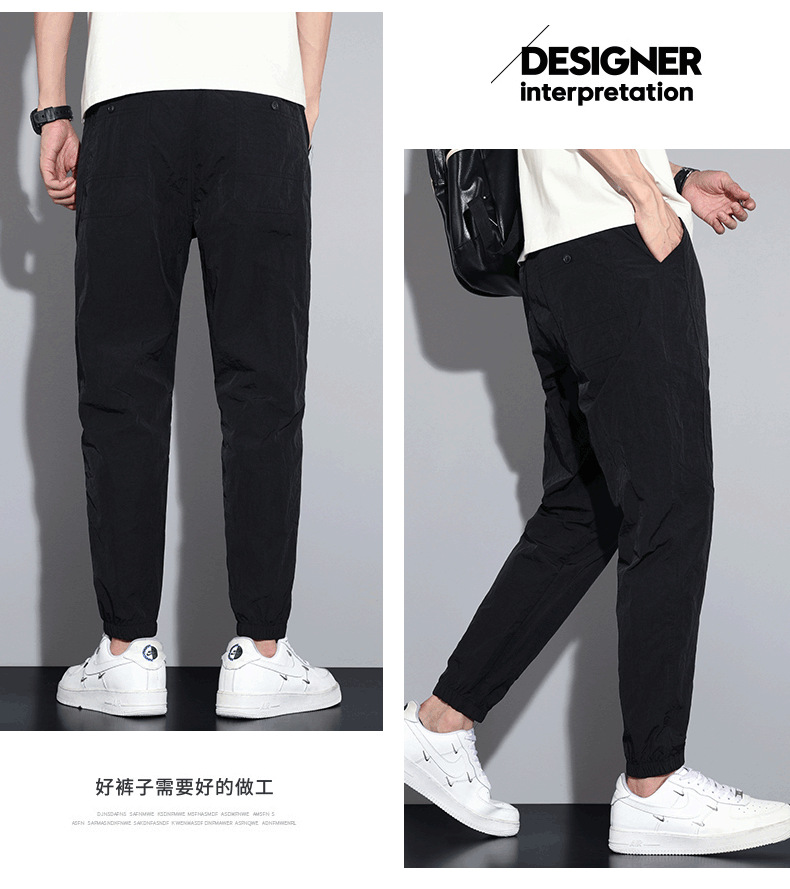 여름 남자 얇은 캐주얼 자른 바지 마이크로 할란 아이스 실크 다리 허리